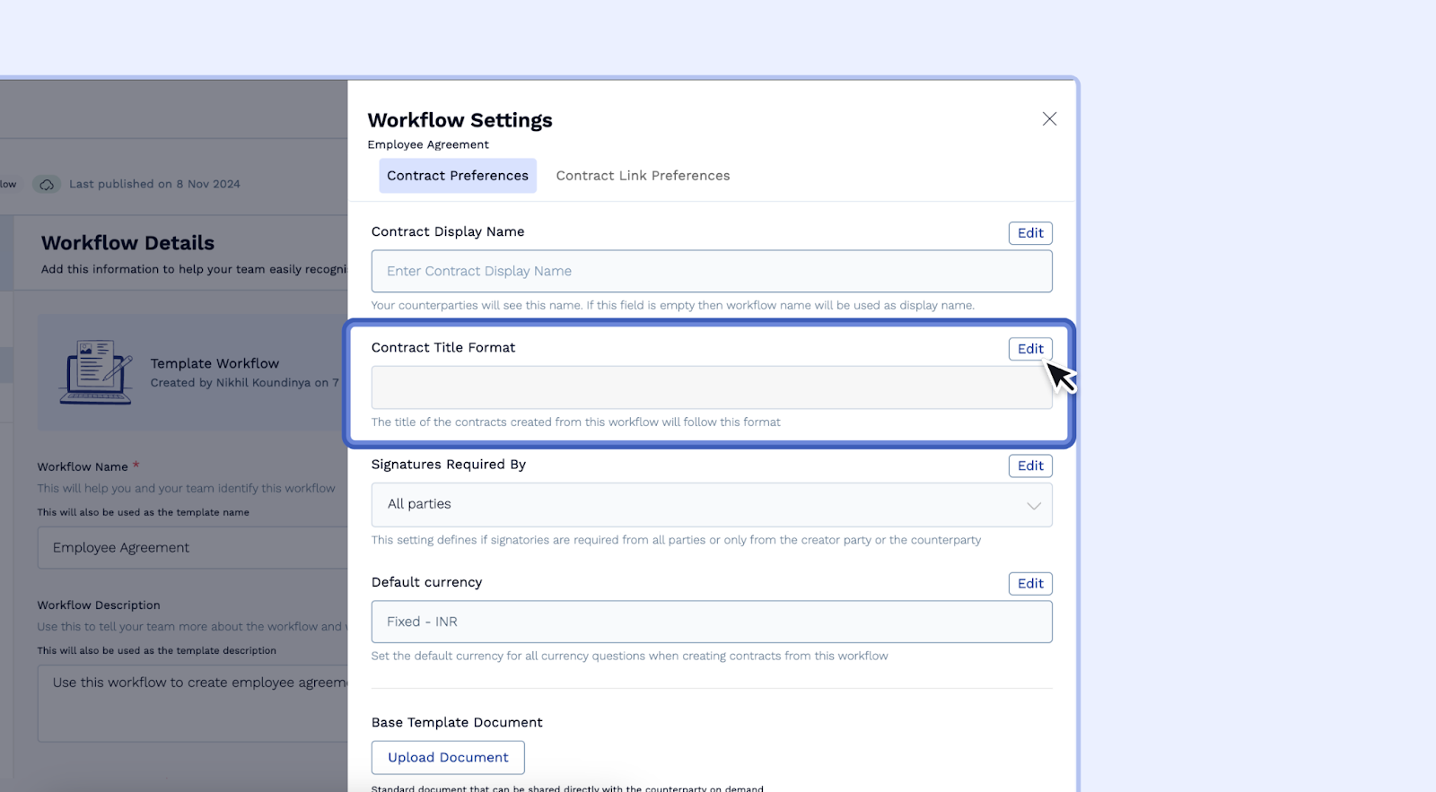 This article guides you on customizing the naming convention for contracts created within SpotDraft workflows. This allows for better organization and identification of your contracts. This guide assumes a medium level of familiarity with the SpotDraft platform.