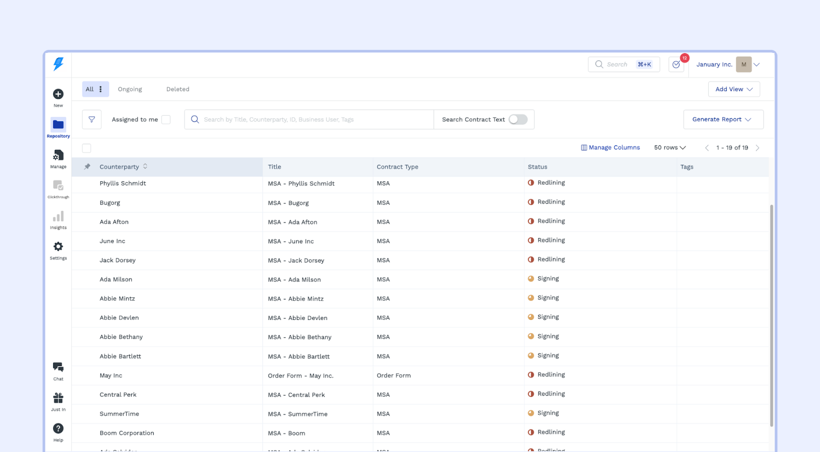 Customizable Views: Tailor your repository to your needs with custom views. Group important contracts, track progress, and create a view that works for you.
