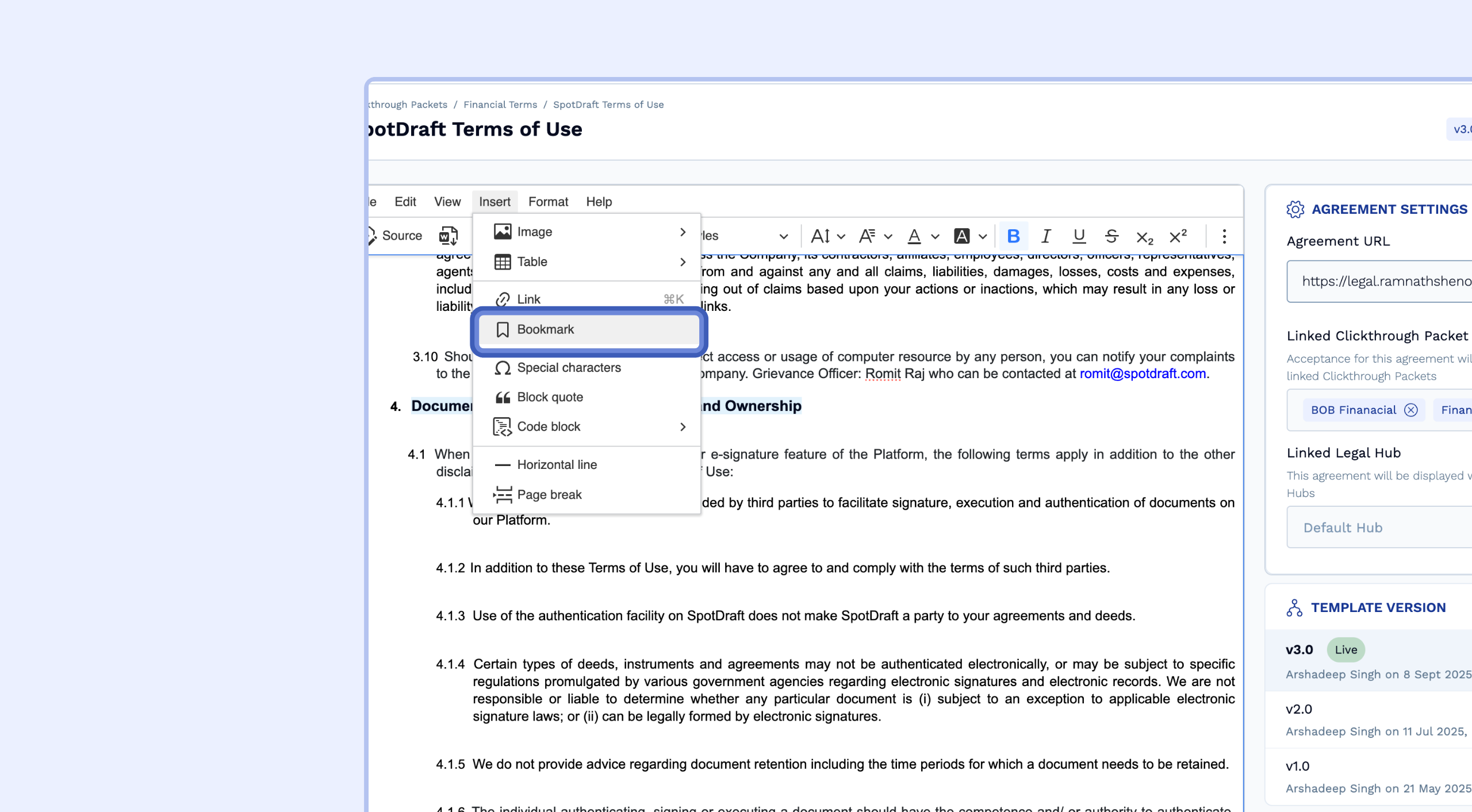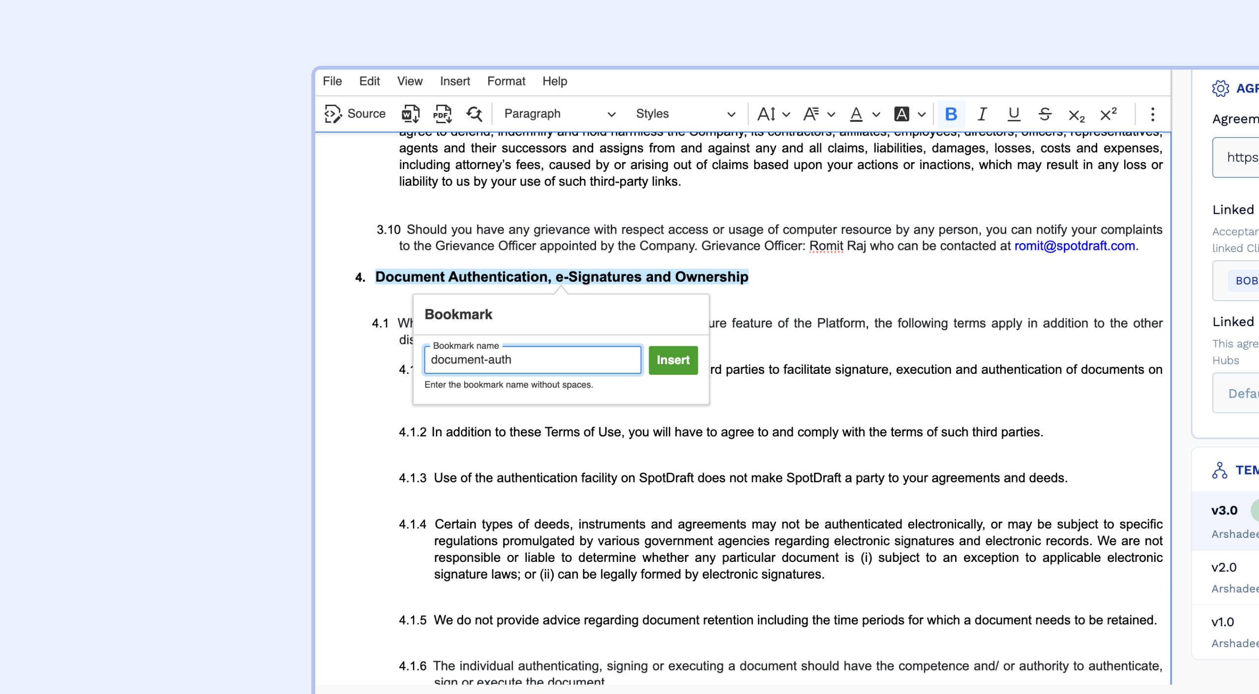 That’s it! Now, when clicked, the hyperlink will take you directly to the bookmarked section within the same agreement.