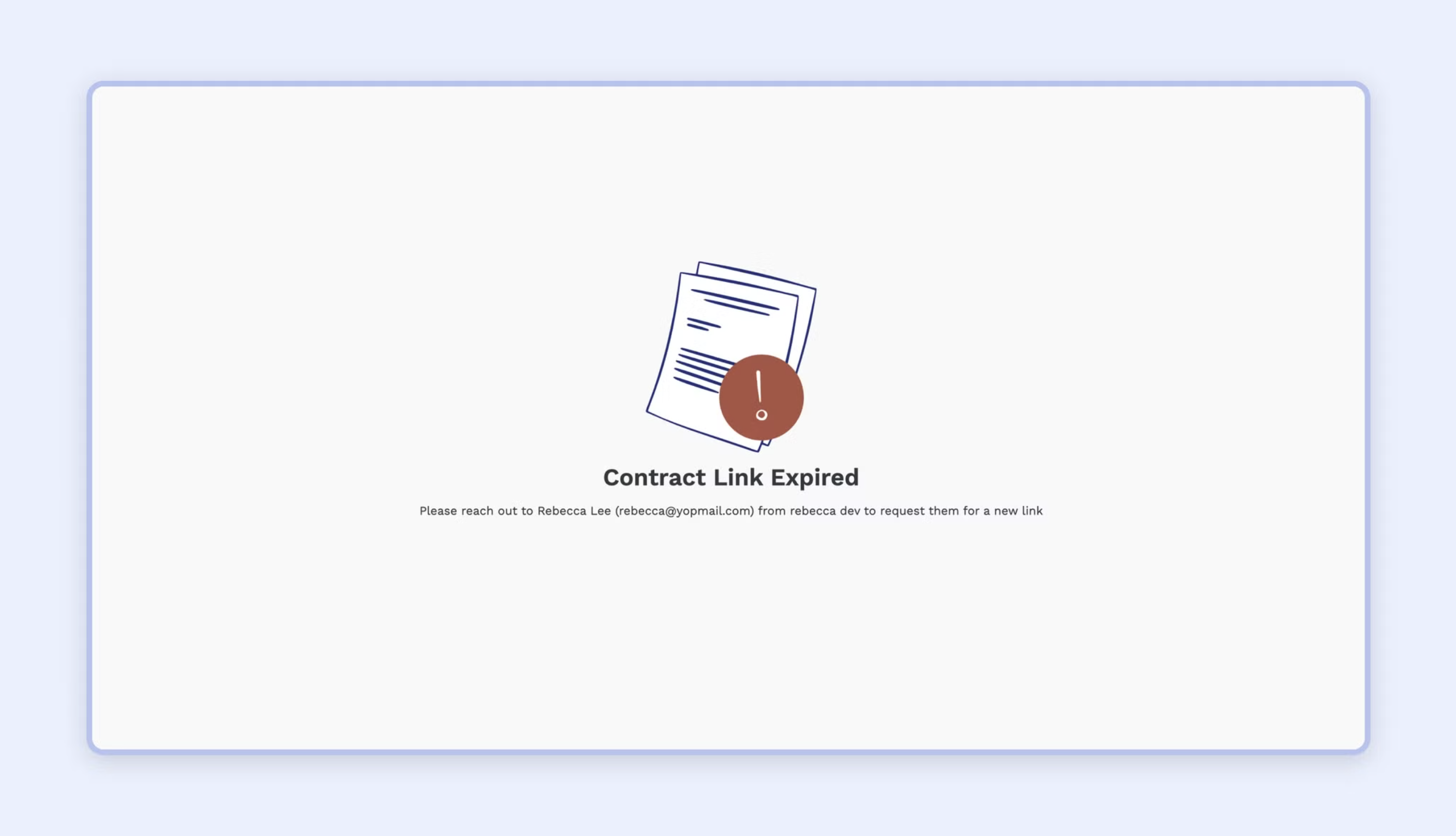 Once the link expires, the counterparty signatory / POC will not be able to access the contract. They will be prompted with a banner to reach out to the respective Business User of the contract to request them for a new link.