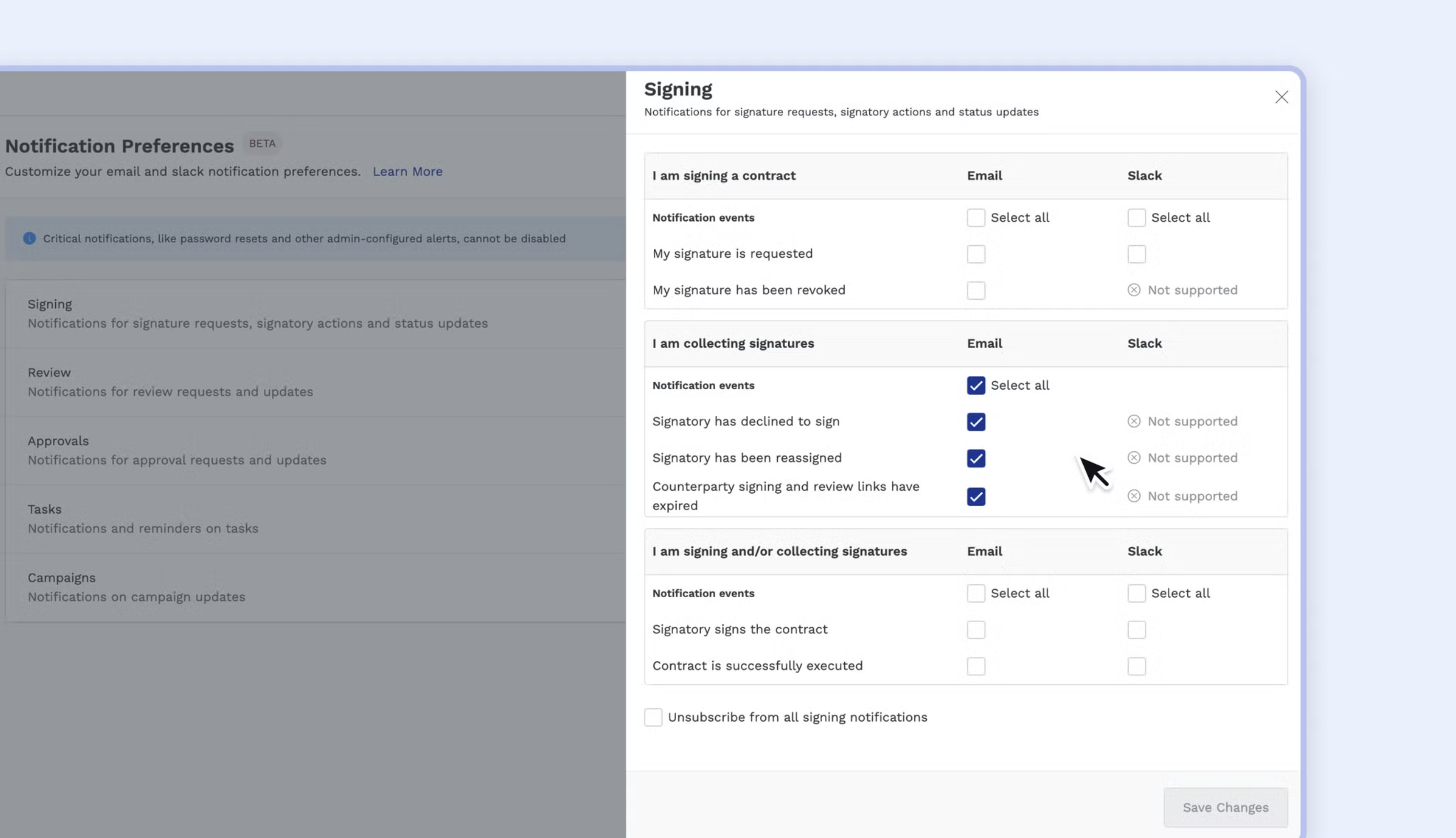 Additionally, you will receive a notification email for all contract links that expired in the past 1 day. You can turn off this notification in the Notification Preferences under the “Contract signing and review links have expired” option.
