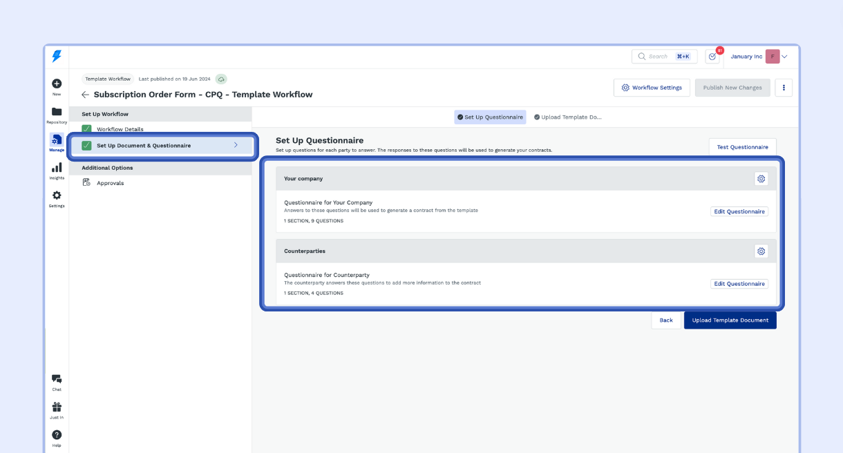 - Click Setup Document & Questionnaire.
