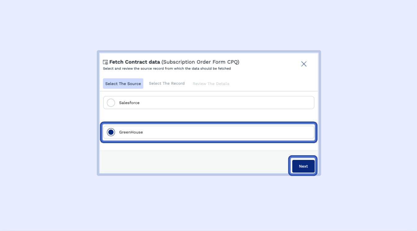 The system will automatically pull in all the mapped data from Greenhouse into the SpotDraft contract.