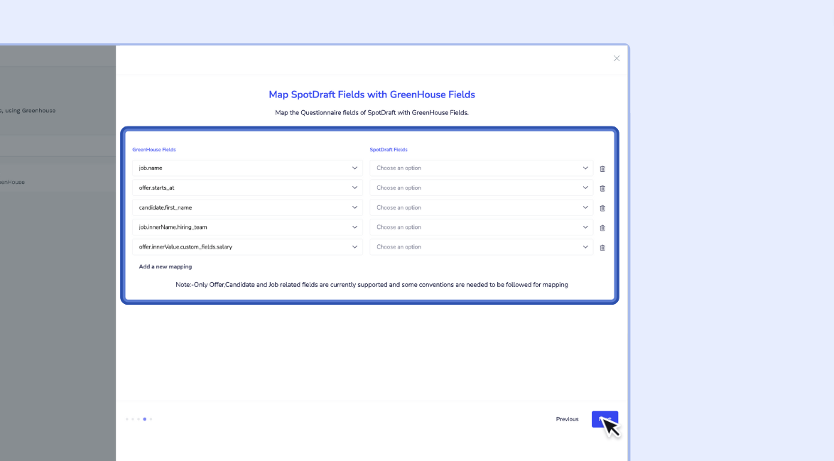 4. Map SpotDraft fields with Greenhouse fields
