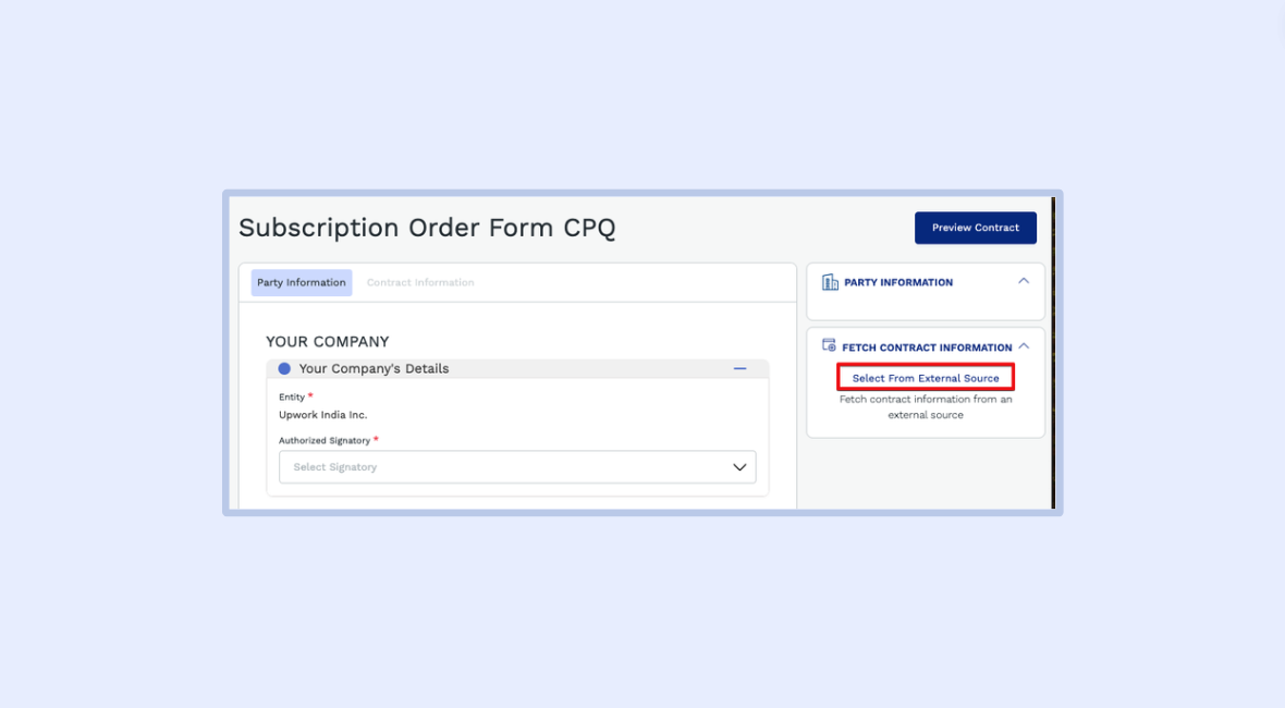 3.1 - On the right side menu within the contract template, locate the Fetch contract information feature.