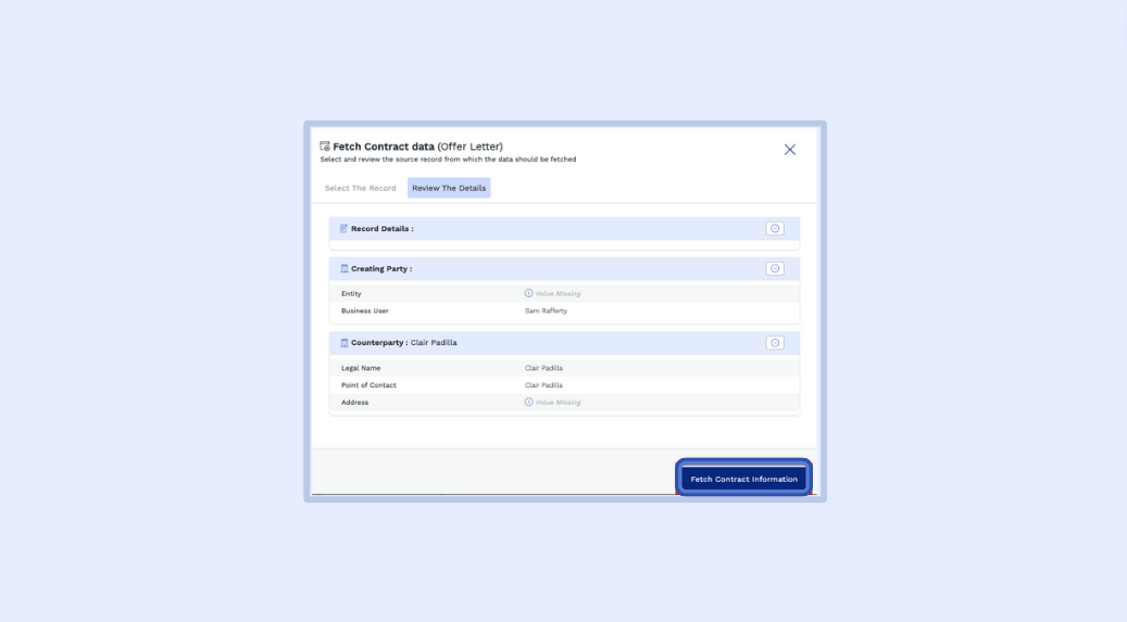 6.3 - Click the Fetch Contract Information button to create the contract record in SpotDraft.
