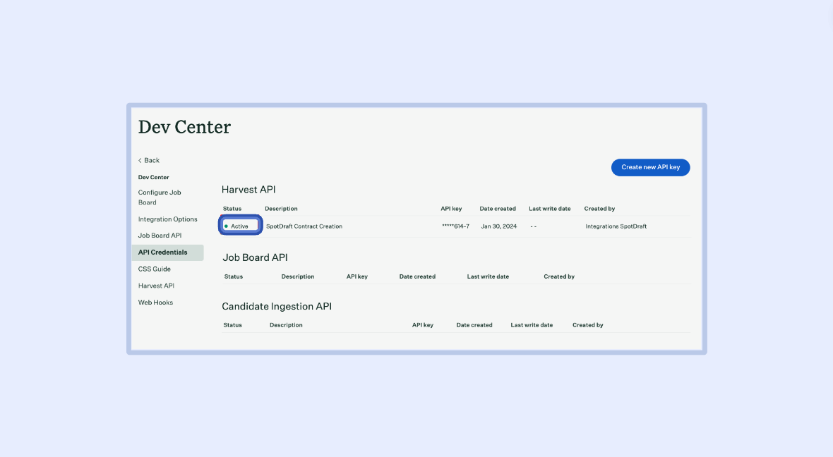 7 - Copy and paste the ‘API key’ to a document as you will need it when configuring the automation in SpotDraft.