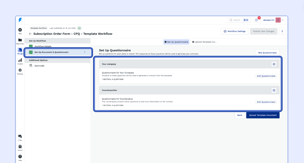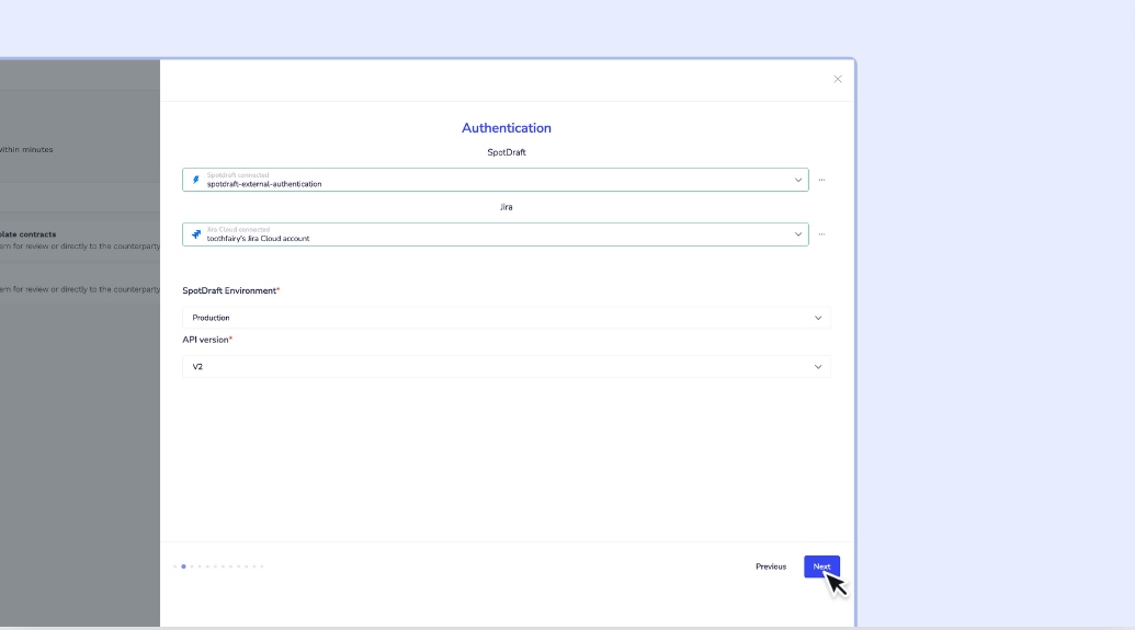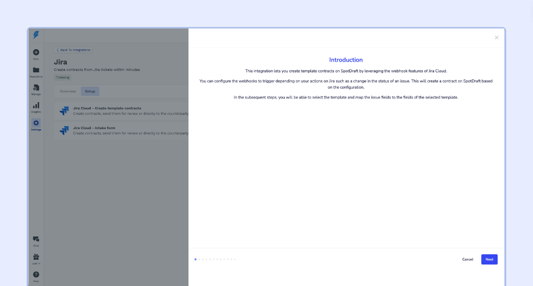 - Select Contract Templates: Determine which SpotDraft contract template requires integration with Jira (e.g., CPQ, NDA).