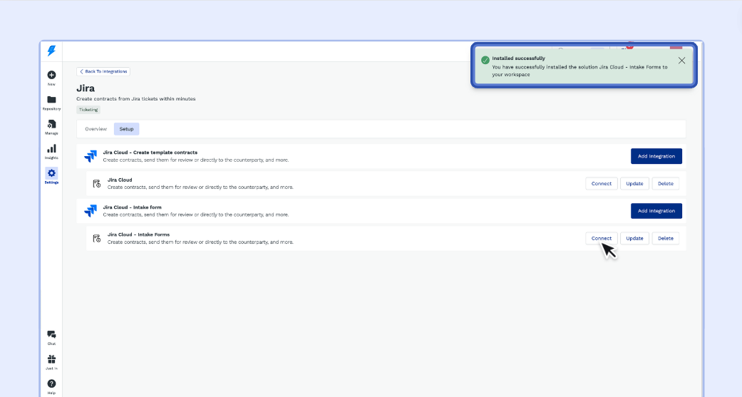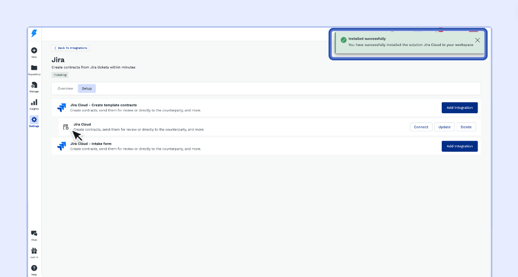 🎉 Congratulations. The Integration has been successfully verified. You can now use it to create Contract Templates in SpotDraft based on activity in Jira!