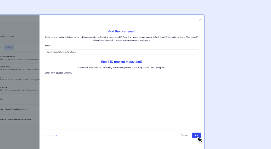 8.1 - Enter the email address to be used in SpotDraft as the creator of the contract.