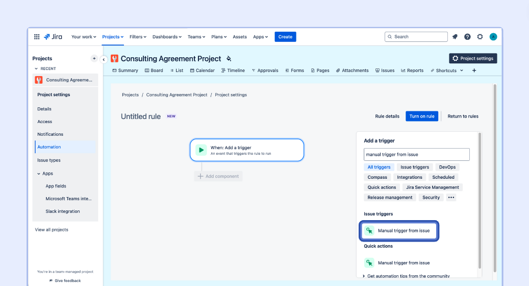 4.1 - Enter Manual trigger from issue in ‘Seach triggers’ box.