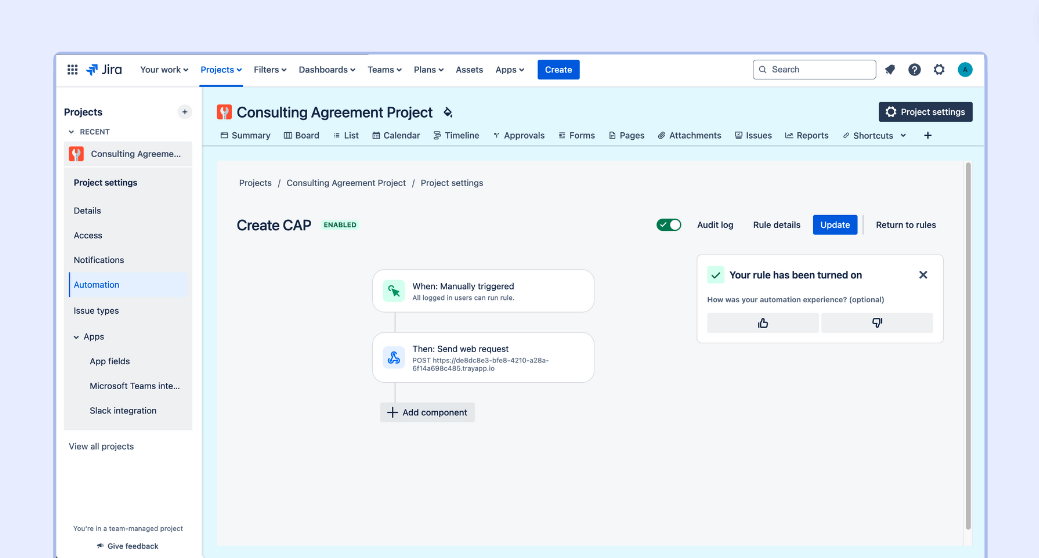 - Jira Automation Knowledge: Familiarity with Jira’s automation functionality, as it is essential for setting up the automation that triggers contract creation in SpotDraft.