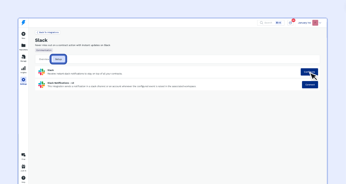 1.3 - Open the Setup section and click Configure 'Slack'