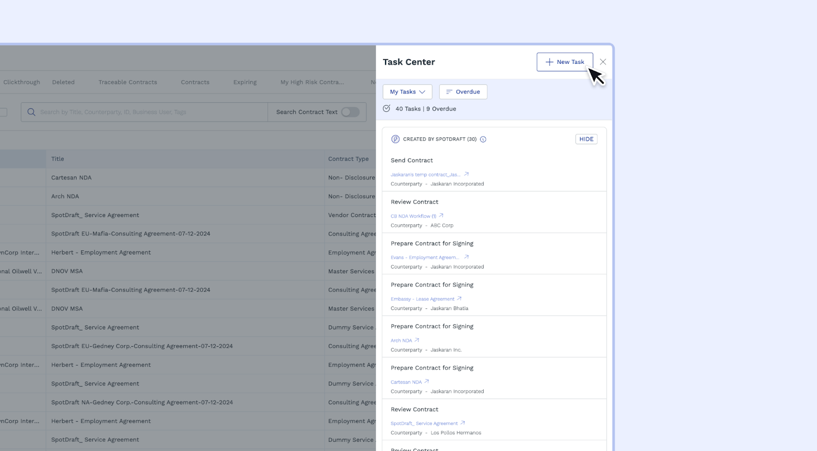 Here are the steps to create new tasks on SpotDraft: