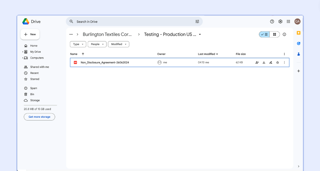 This validation process will confirm that your integration has been properly set up and contracts are automatically saved to your Google Drive in line with the configuration set.