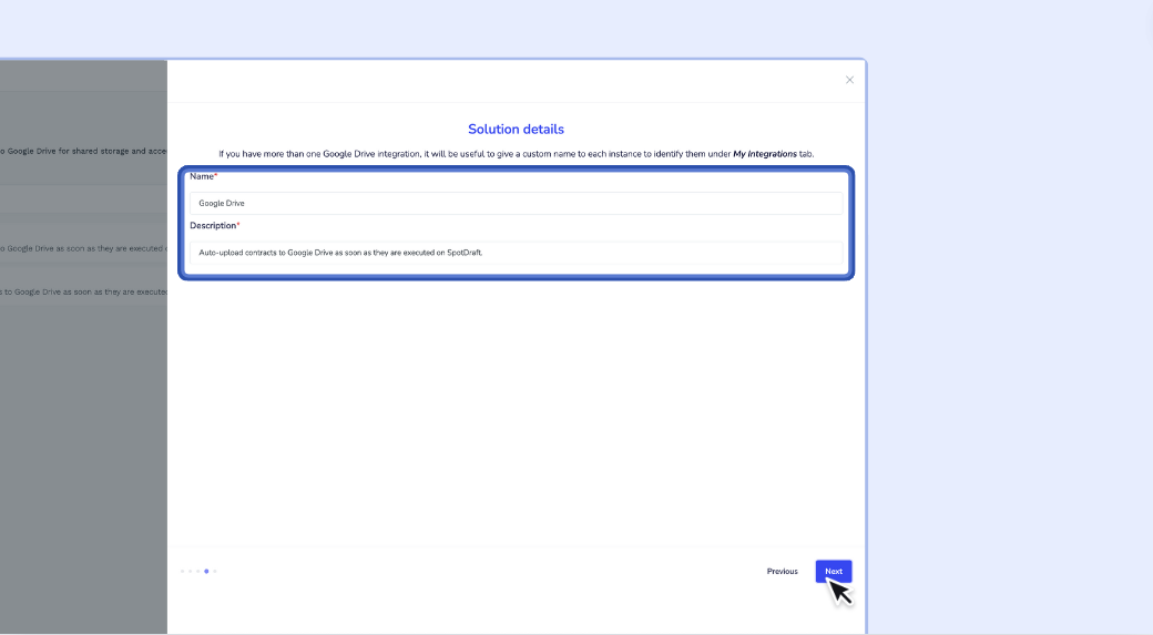 • One Google Drive Integration is supported per SpotDraft workspace.