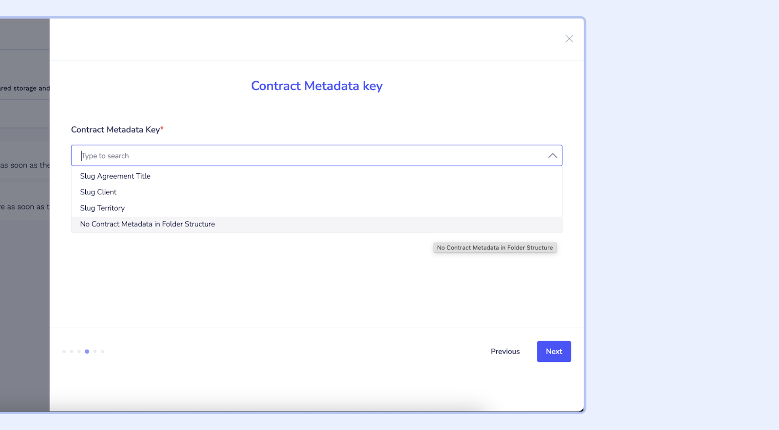 1. Choose the contract metadata field that will be used to categorize contracts within Google Drive.