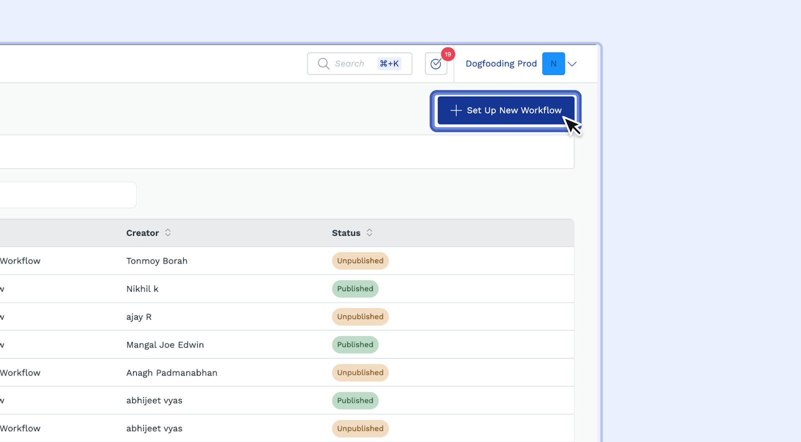 - In the Workflow Manager, click the "Set Up New Workflow" button.
