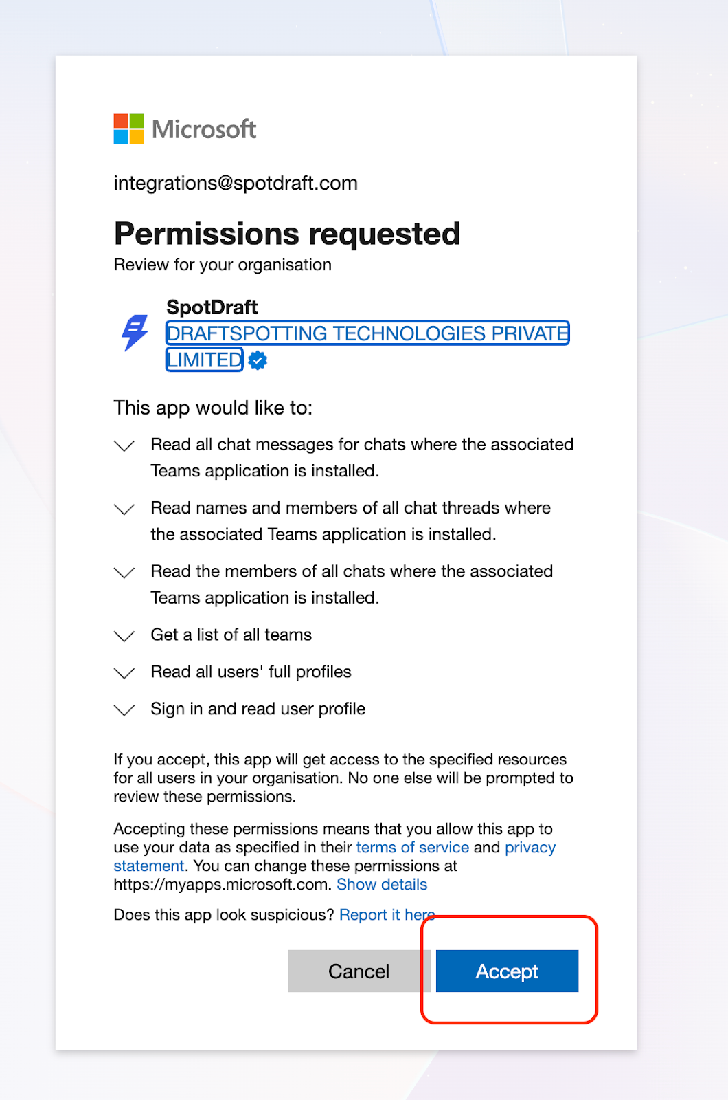 Q: How secure is the SpotDraft-Microsoft Teams integration?
