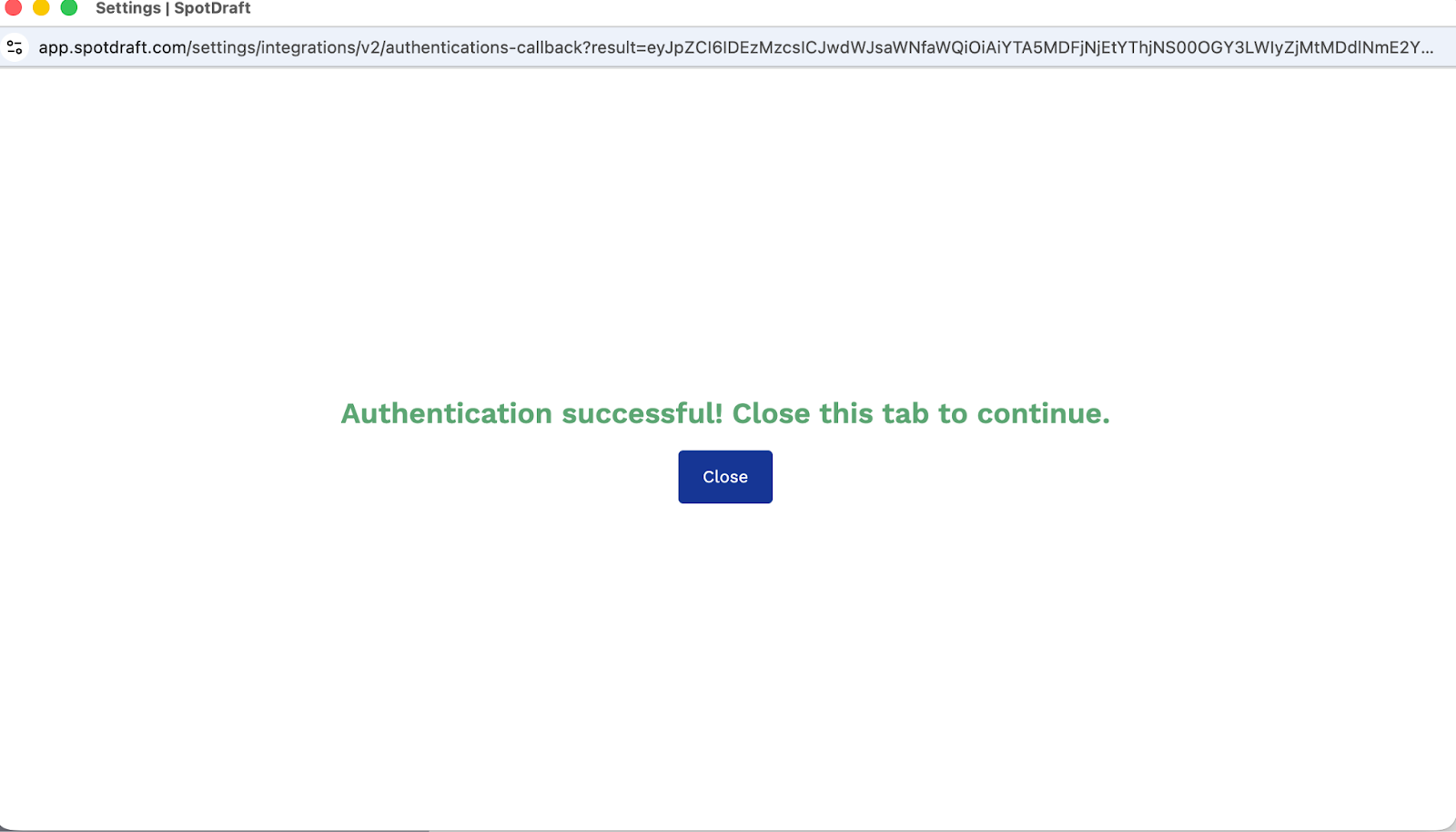 Once authentication is successful, you will see the pop-up with the “Authentication Successful! Close this tab to continue” message