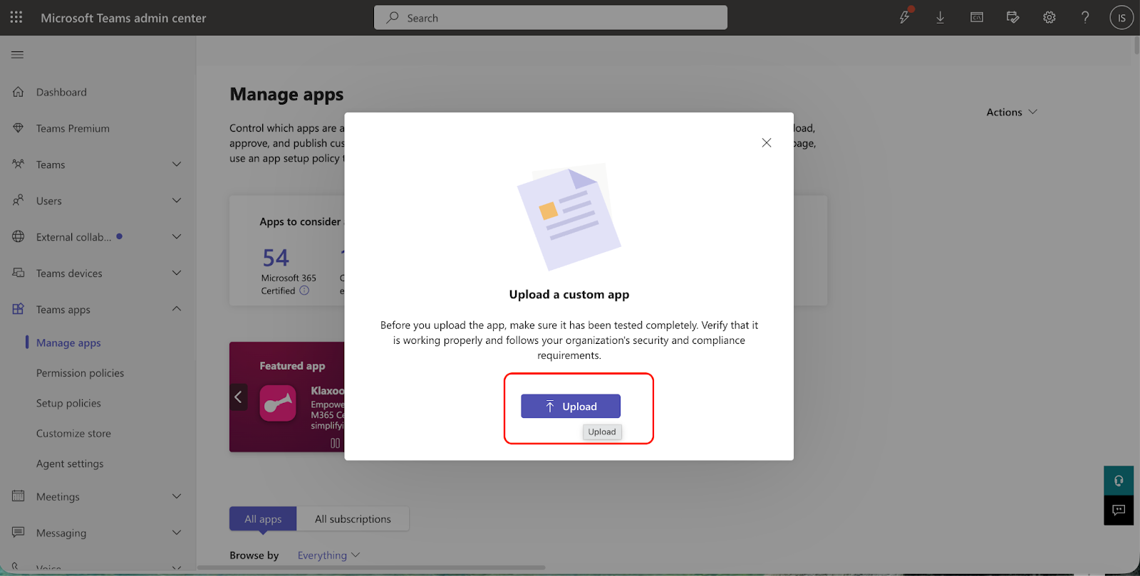 Upload the Teams package here. Please contact your SpotDraft representative to get the package.