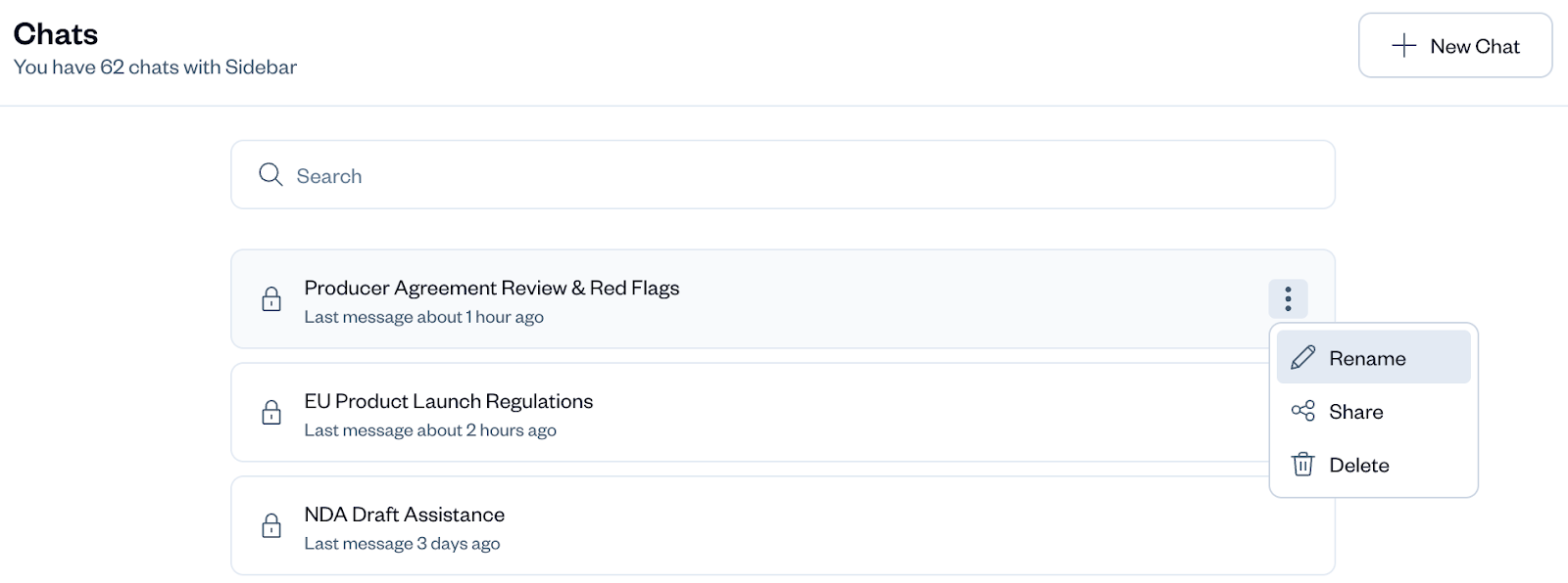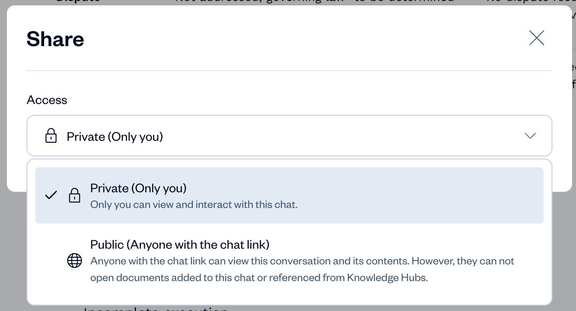 Pro Tip: Sharing a chat is a great way to provide context to a business stakeholder. Instead of just sending a final clause, you can share the chat link to show the reasoning, research, and iterations that led to the final result.