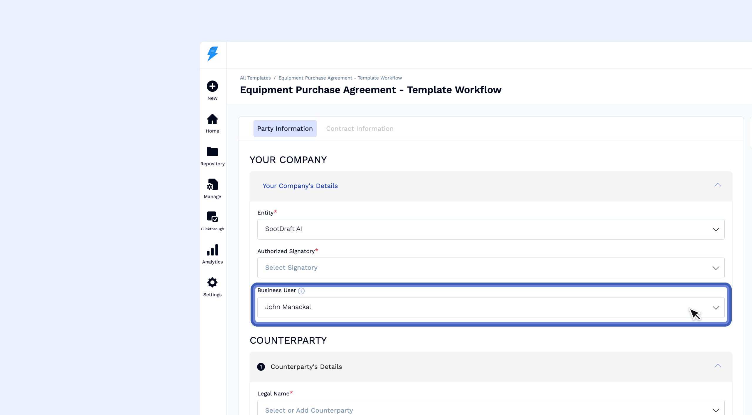 You can assign a Business User across all major contract creation workflows. Here’s how: