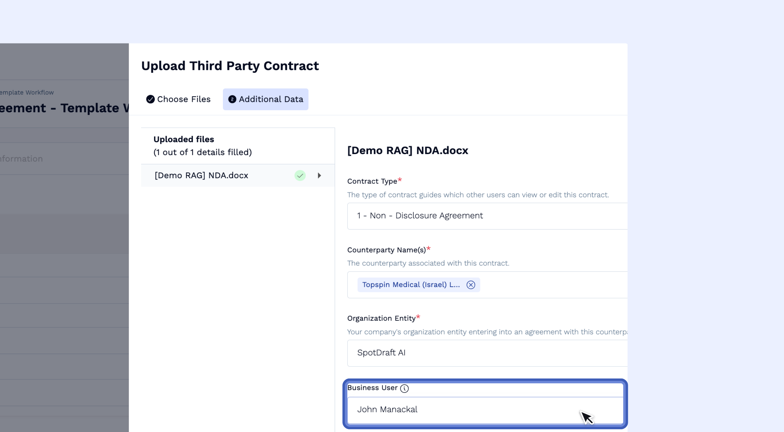 Workspace-Wide: Once enabled, the Business User field will be available on all applicable contract creation workflows.