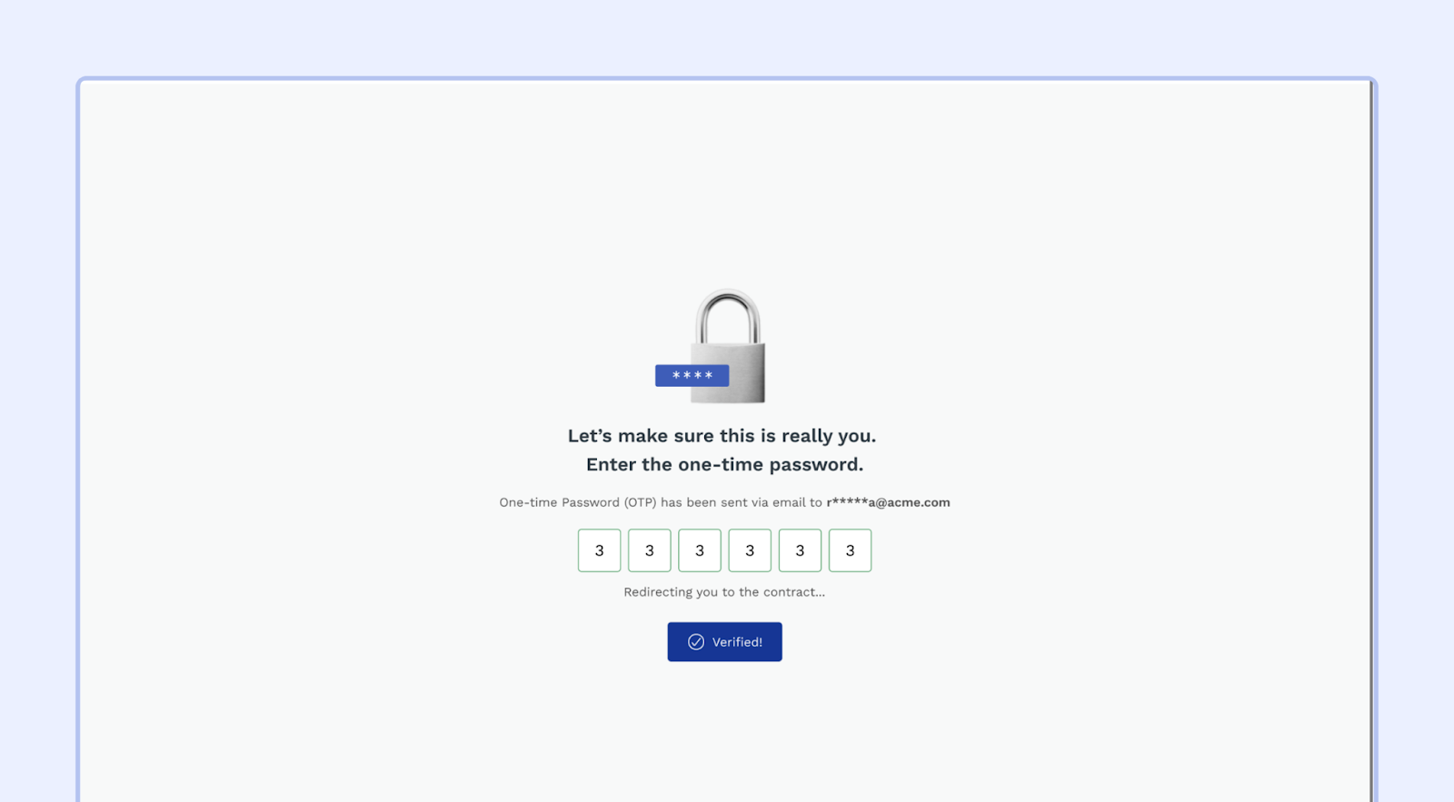 - The recipient will get a 6-digit OTP sent to their registered email address as soon as they open the contract link.