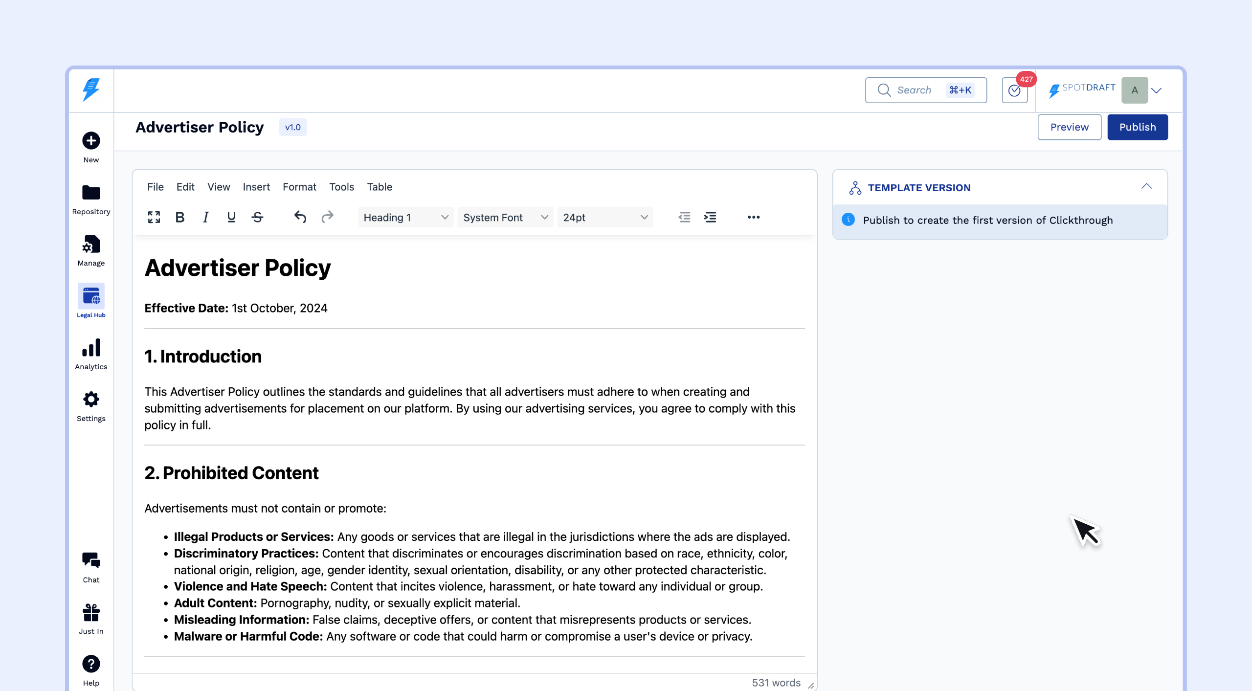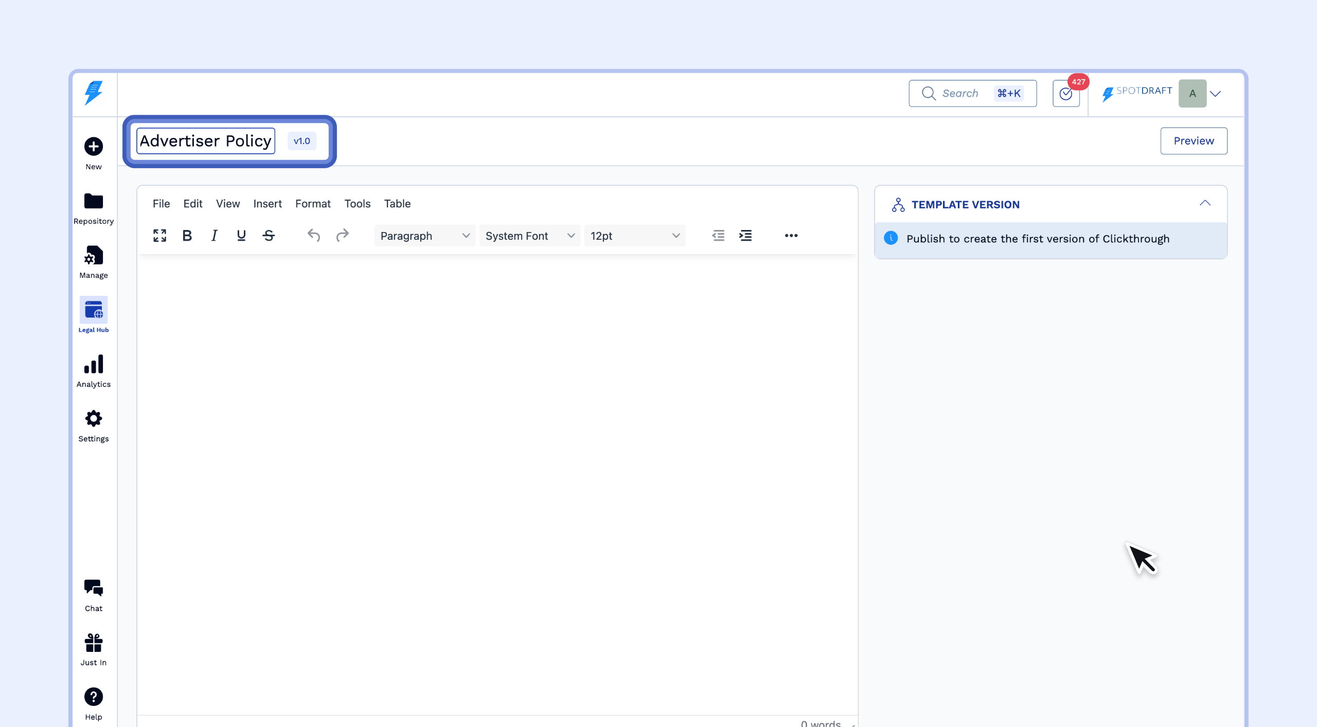 Click on the Legal Hub menu.