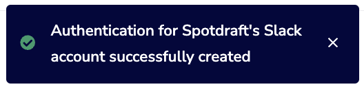 Note. A ‘success message’ will appear on SpotDraft confirming authentication between SpotDraft & Slack is complete