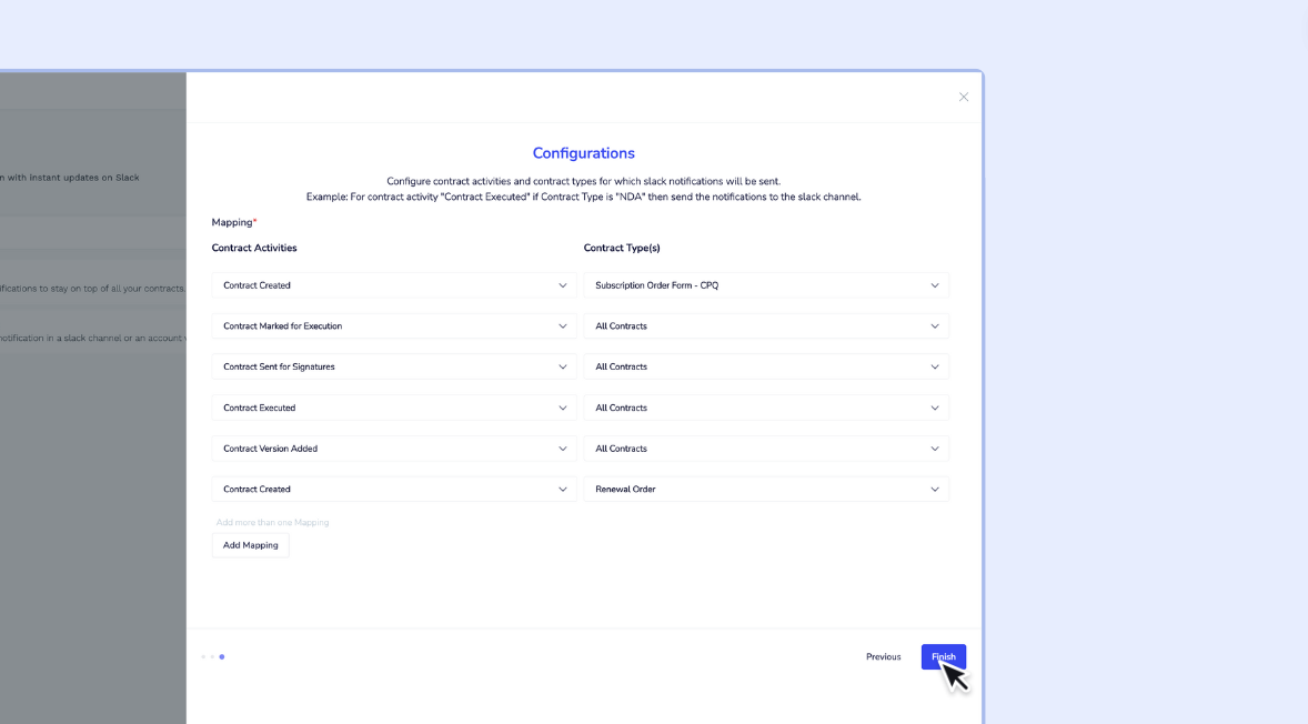2.10 - Click Add a new mapping to choose the Contract Activities to be notified in Slack.