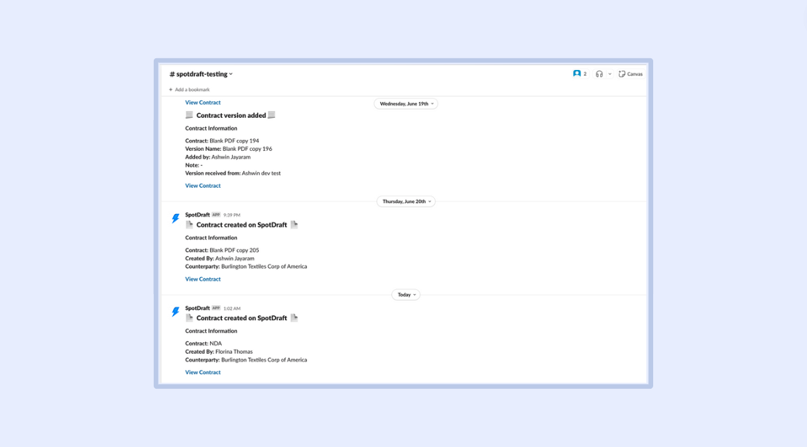 With SpotDraft’s integration for Slack, you can: