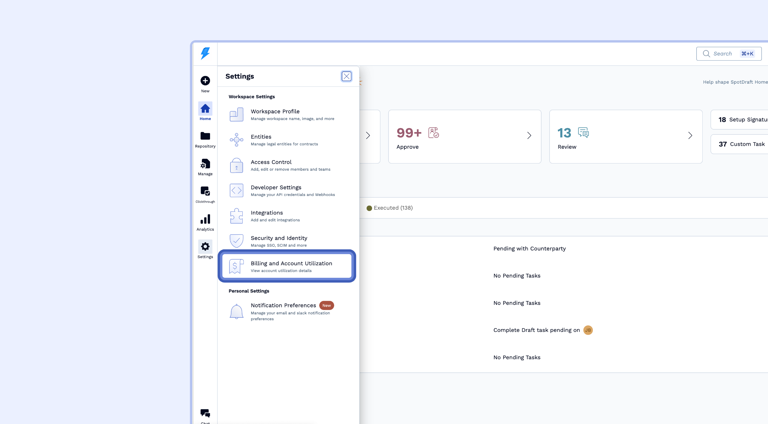 Billing administrators can access this dashboard by navigating to Settings > Billing and Account Utilization in the workspace settings menu.