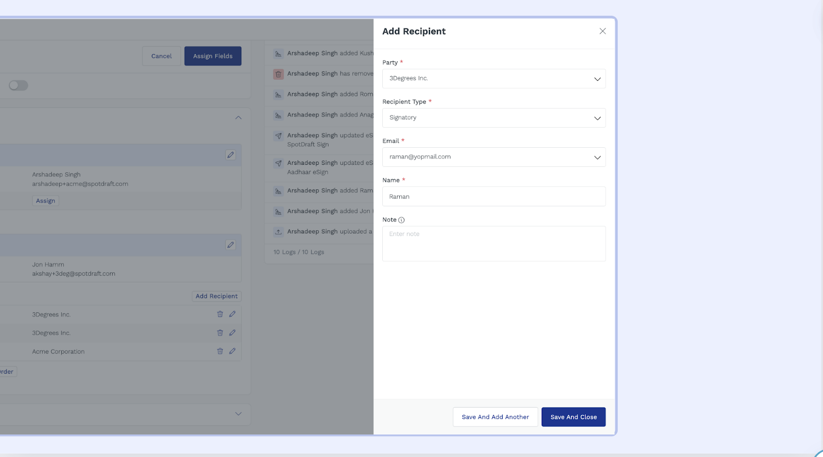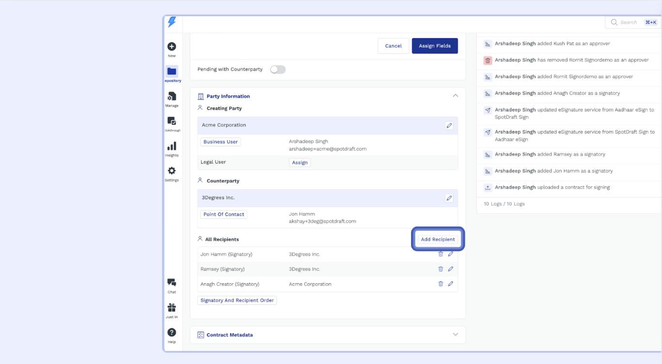 Adding Recipients to Your Contract in SpotDraft
