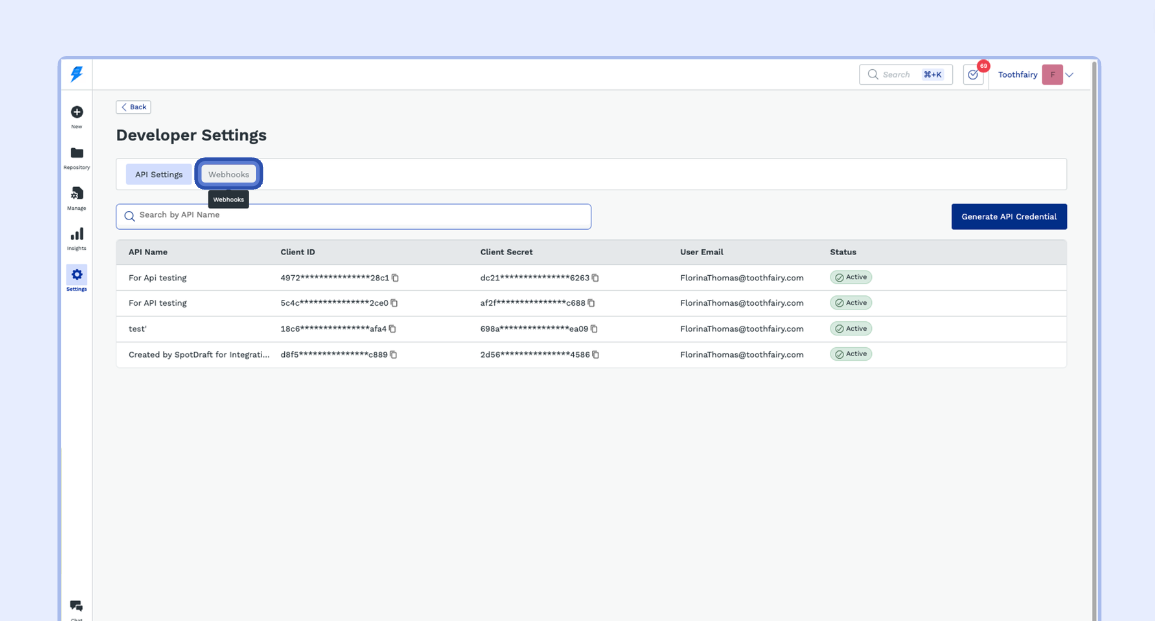 💡 This comprehensive guide provides step-by-step instructions for configuring SpotDraft API credentials, setting up webhooks, and accessing webhook logs, empowering users to streamline workflows and enhance automation efficiently.