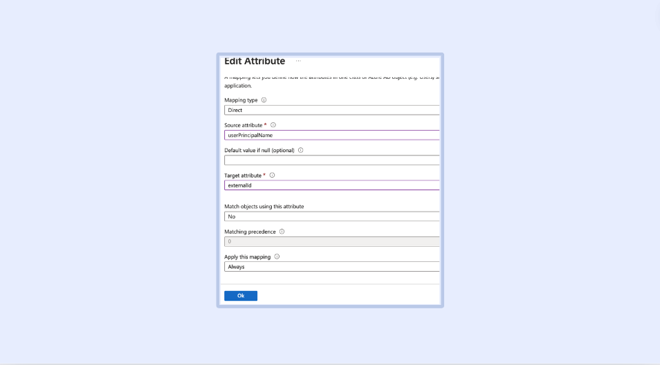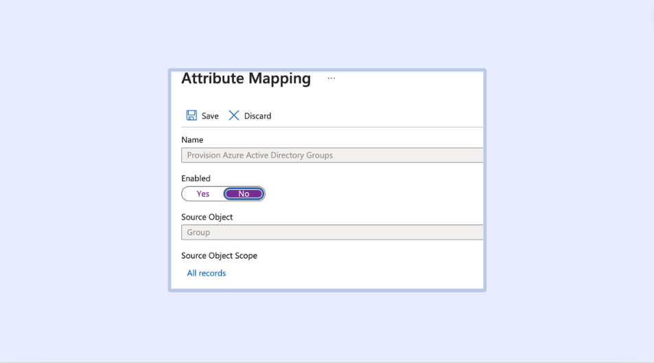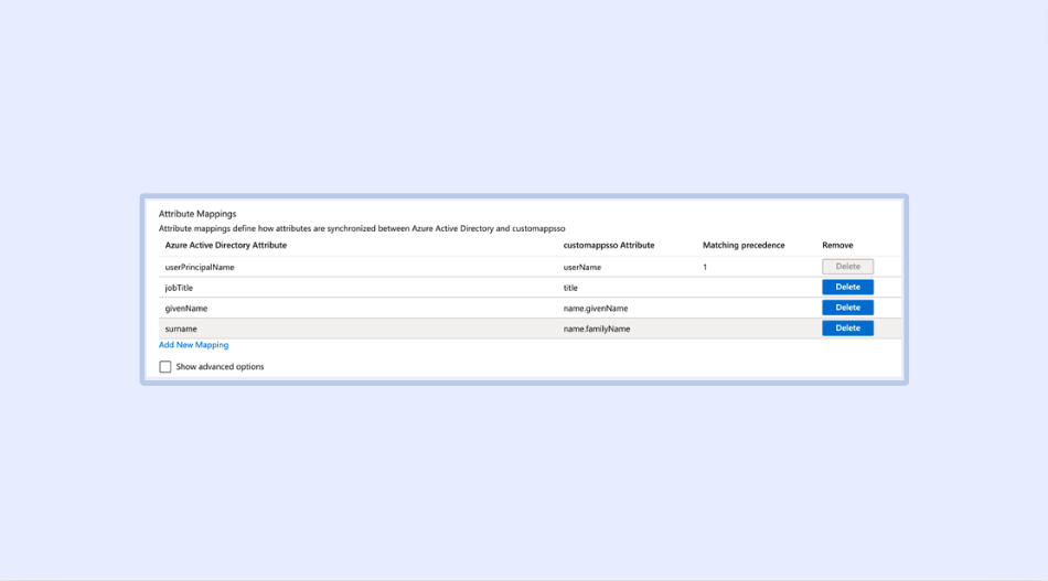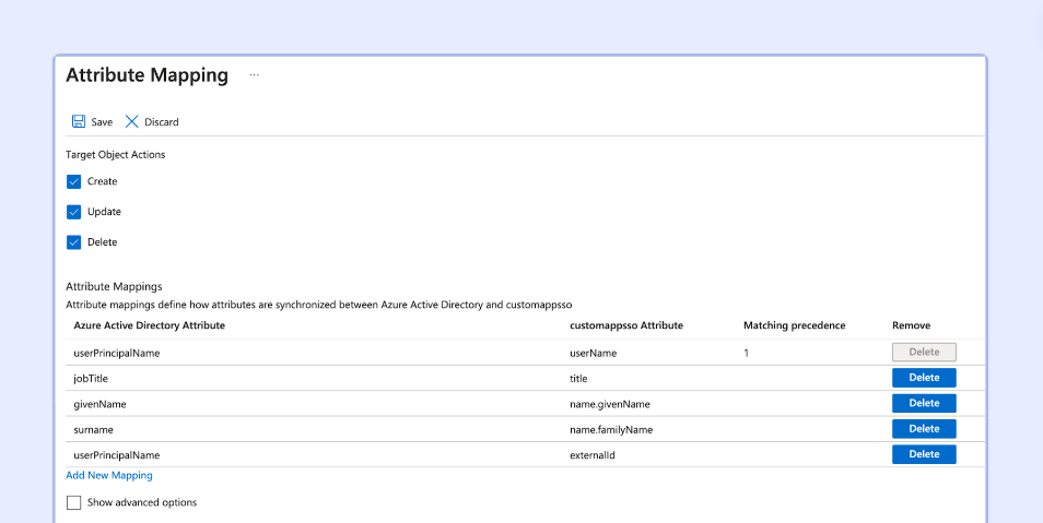 • Remove unsupported attribute mappings except for "userName", "name.givenName", "name.familyName", and "title"