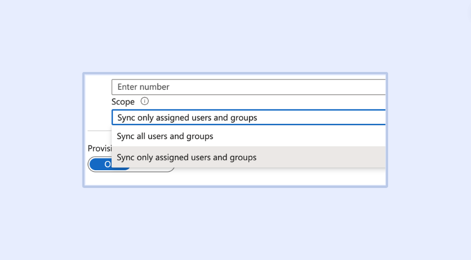 • Here, the option Sync only assigned users and groups will provision only those users and groups that are added to the app, and, Sync all users and groups will create accounts for everyone.