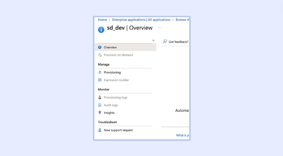 • You will be on the application provisioning page, click provisioning on the sidebar again.