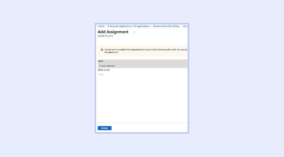 • Click on Assign. After the standard provisioning Interval for Azure, the user will be provisioned to SpotDraft