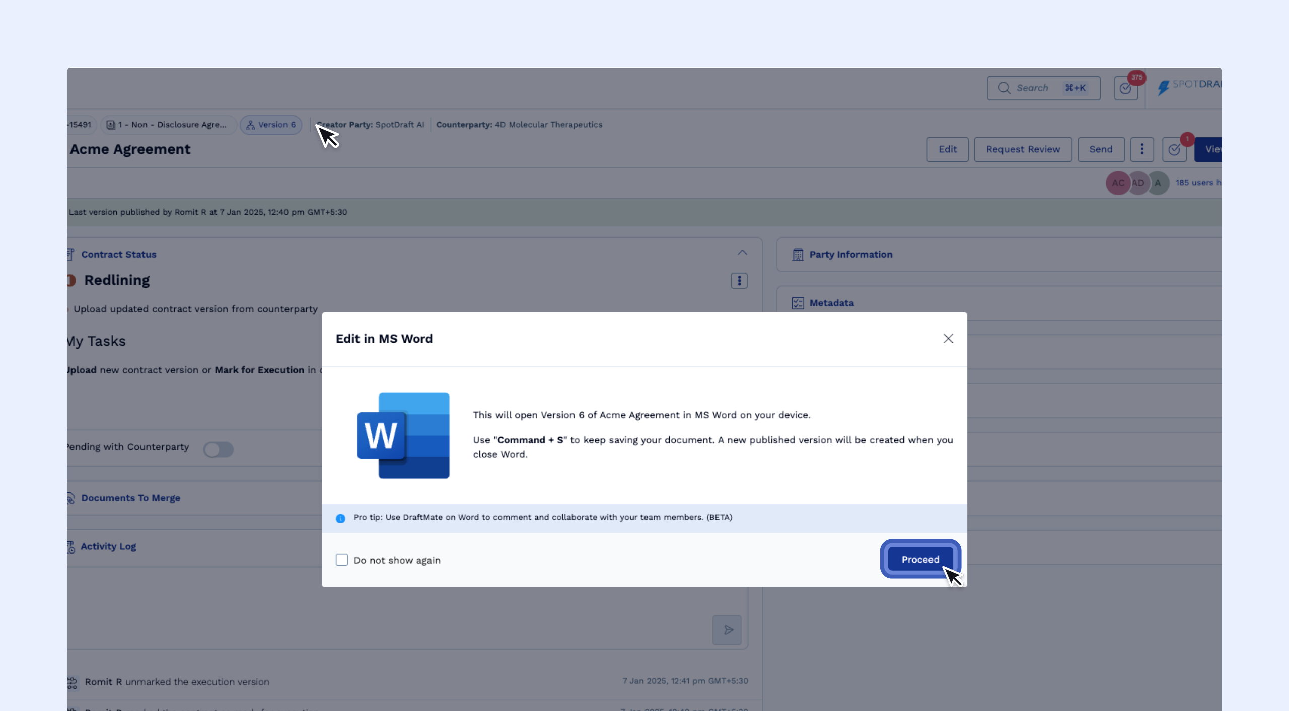 Editing Contracts with Microsoft Word for Desktop in SpotDraft