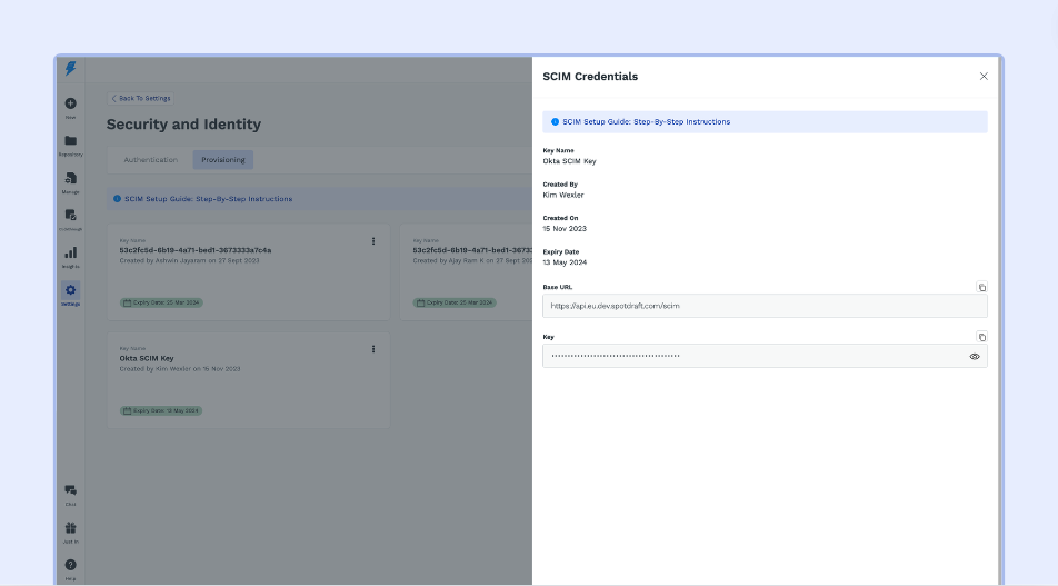 Step 1: Login to SpotDraft and navigate to Settings → Security and Identity.
