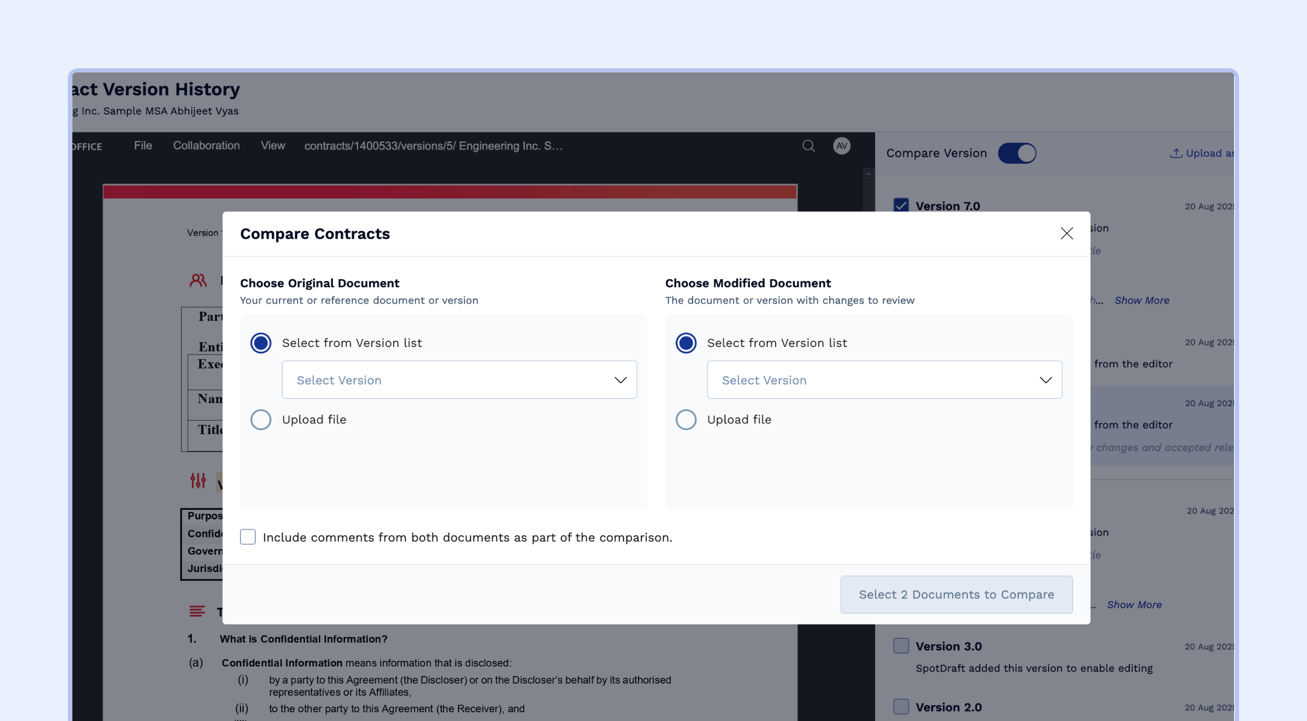 Comparing Documents using SpotDraft's Comparison Feature