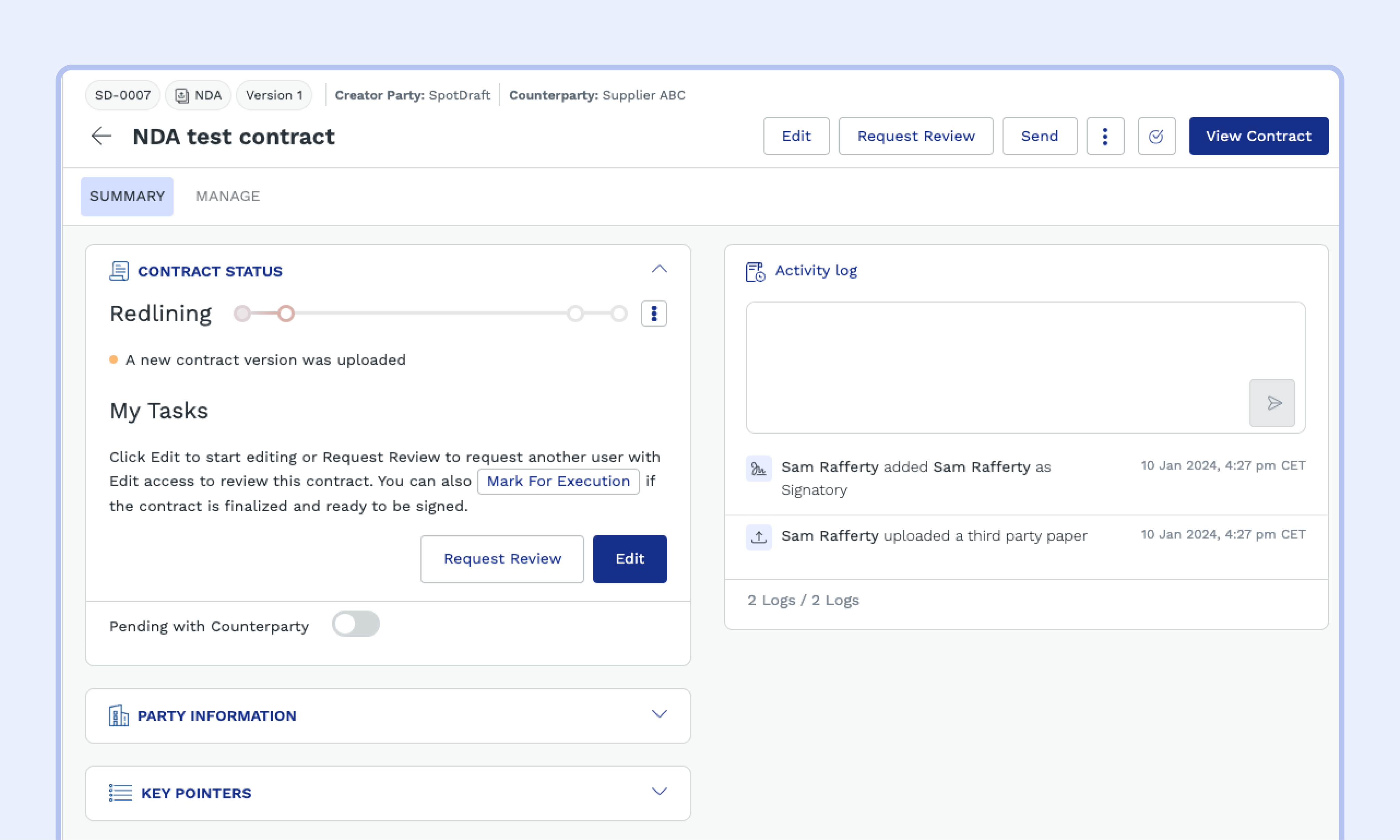 10 - Click the Name of the Contract in blue text, as this is a link to the contract record in SpotDraft.