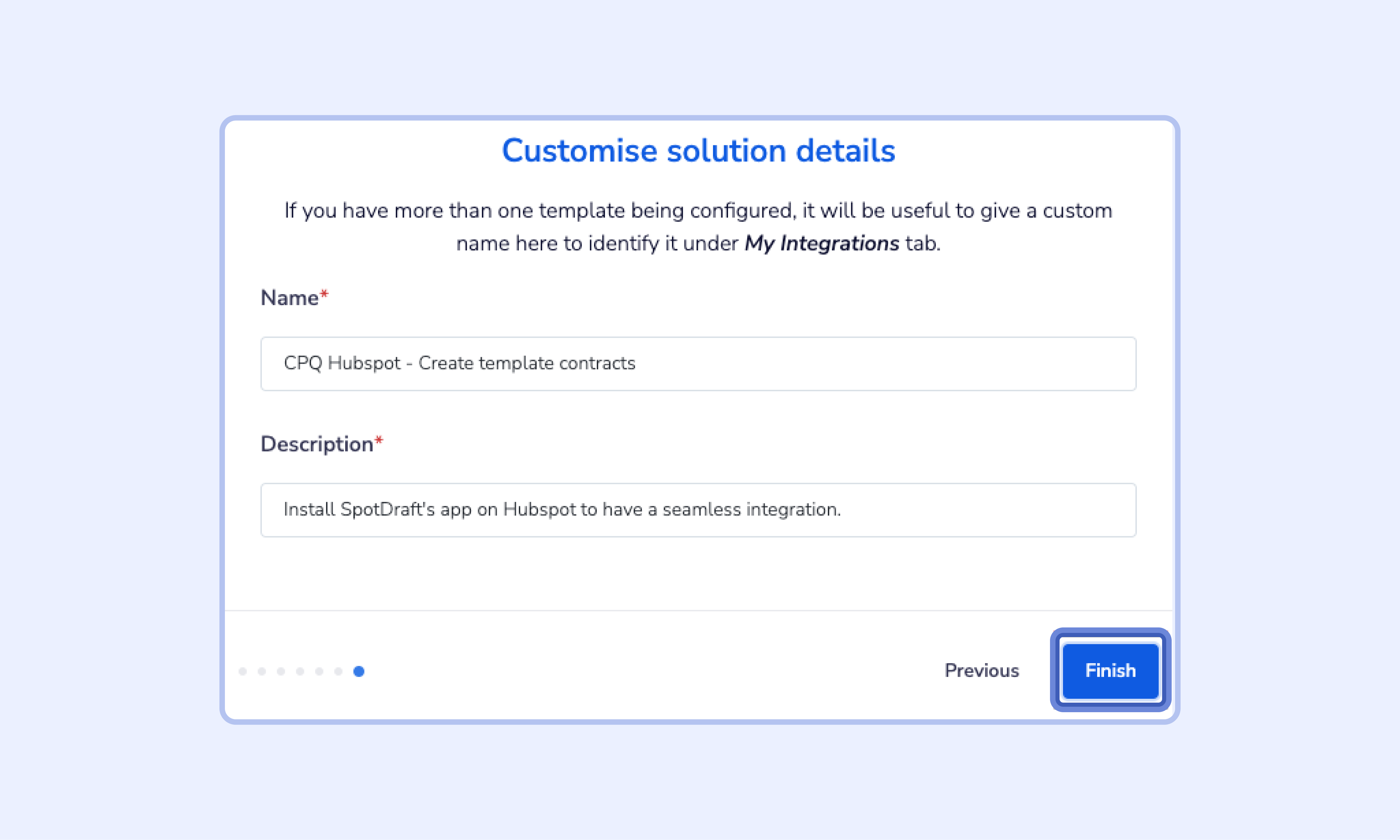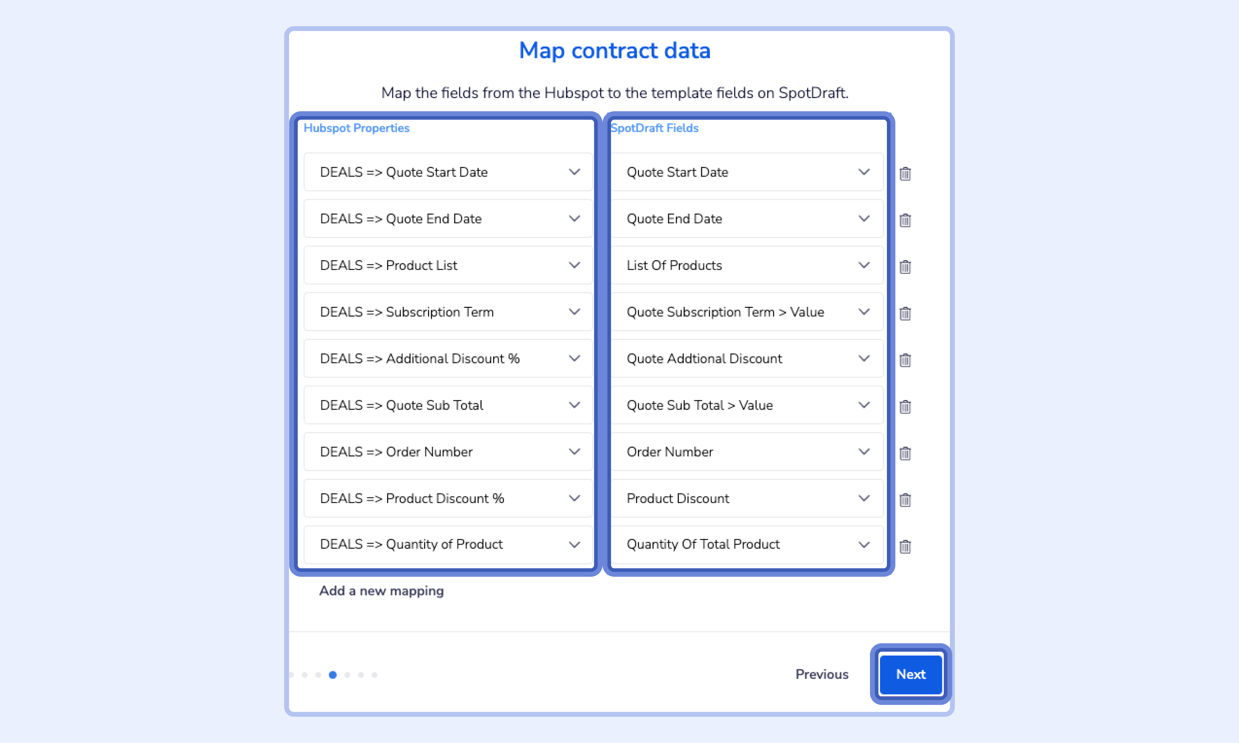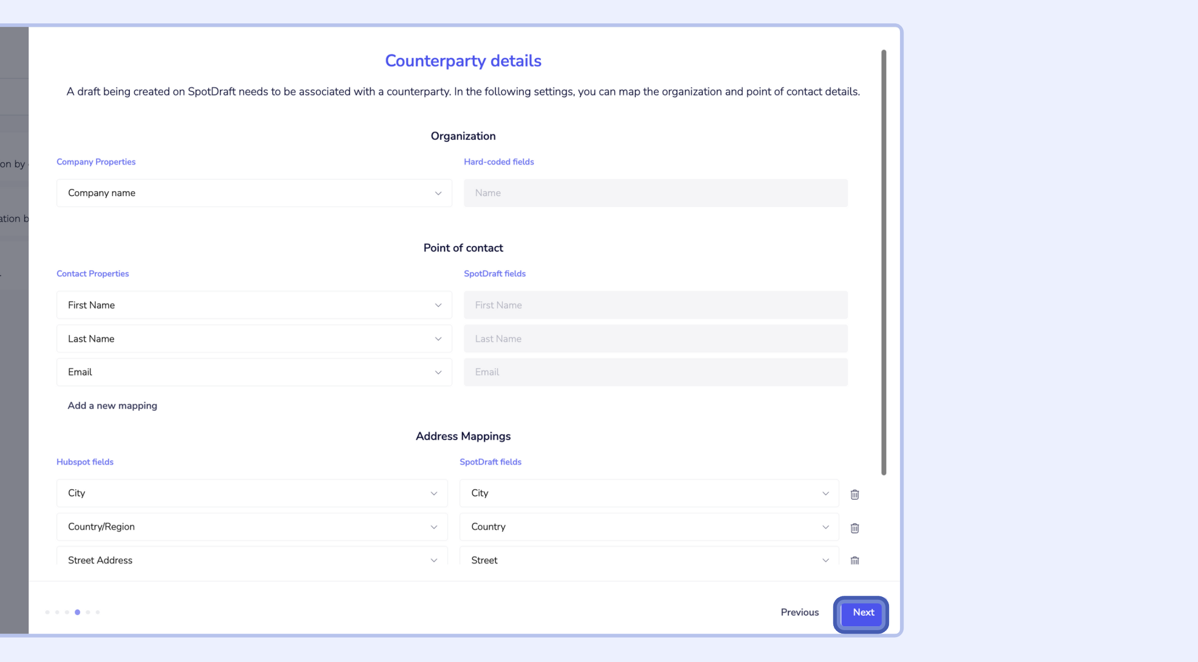 Note. Repeat this process for each SpotDraft contract template you plan to integrate with HubSpot. This ensures that each template's unique data needs are met and properly mapped for seamless integration.
