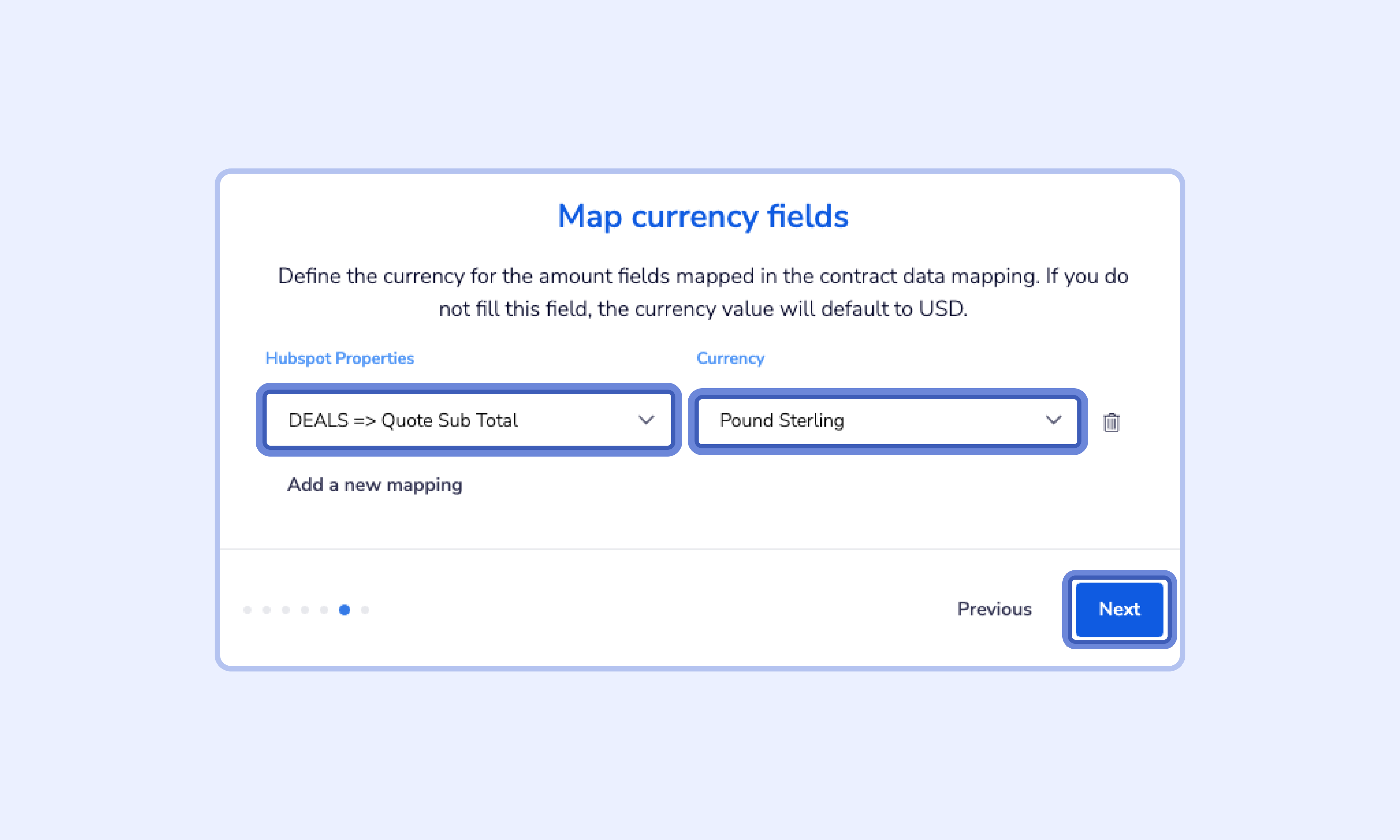 8.3 - Click Add a new mapping such that all ‘Currency’ field types have a mapping row.