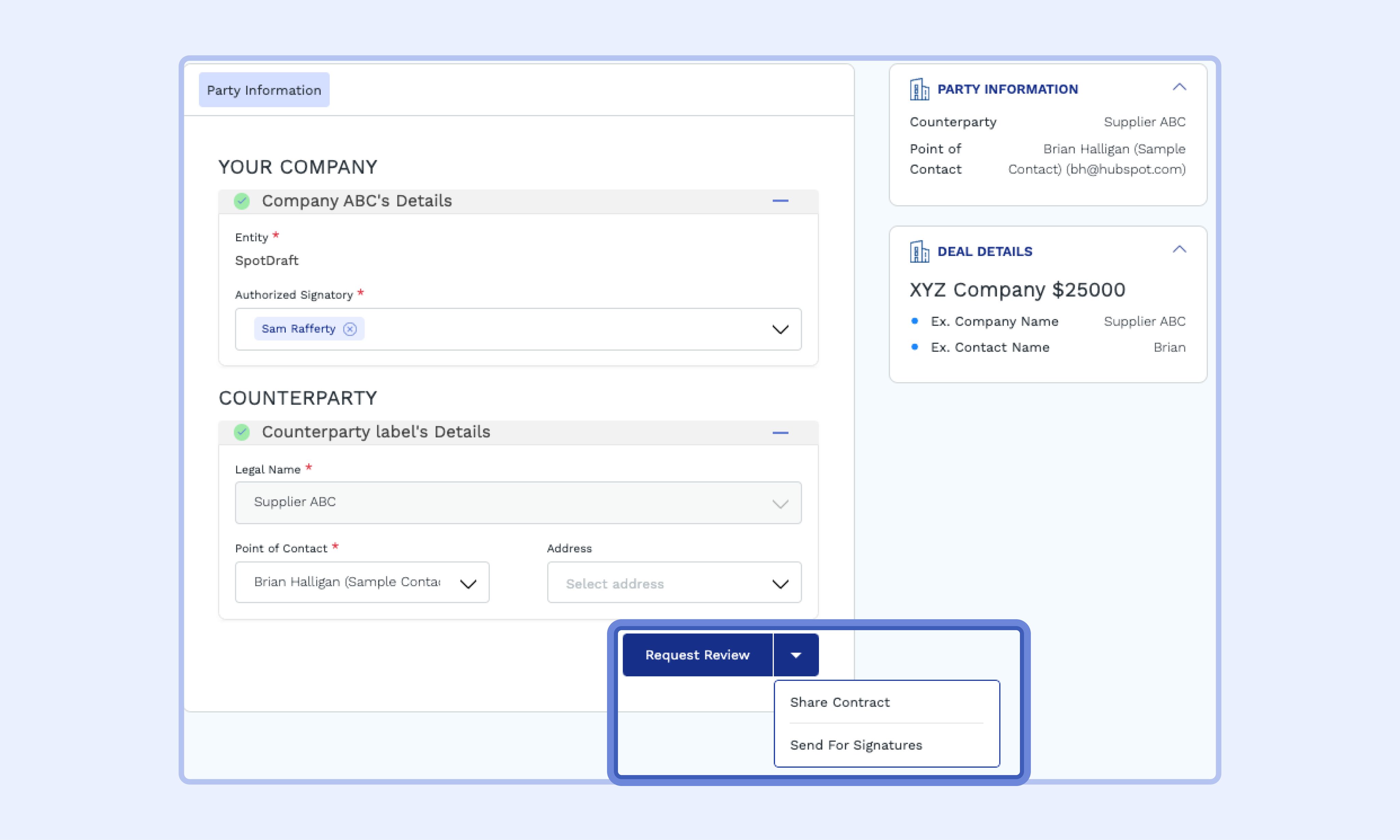 - Centralized Operations: Maintain operations within HubSpot while legal teams use SpotDraft, ensuring efficient data sync and eliminating manual copying.