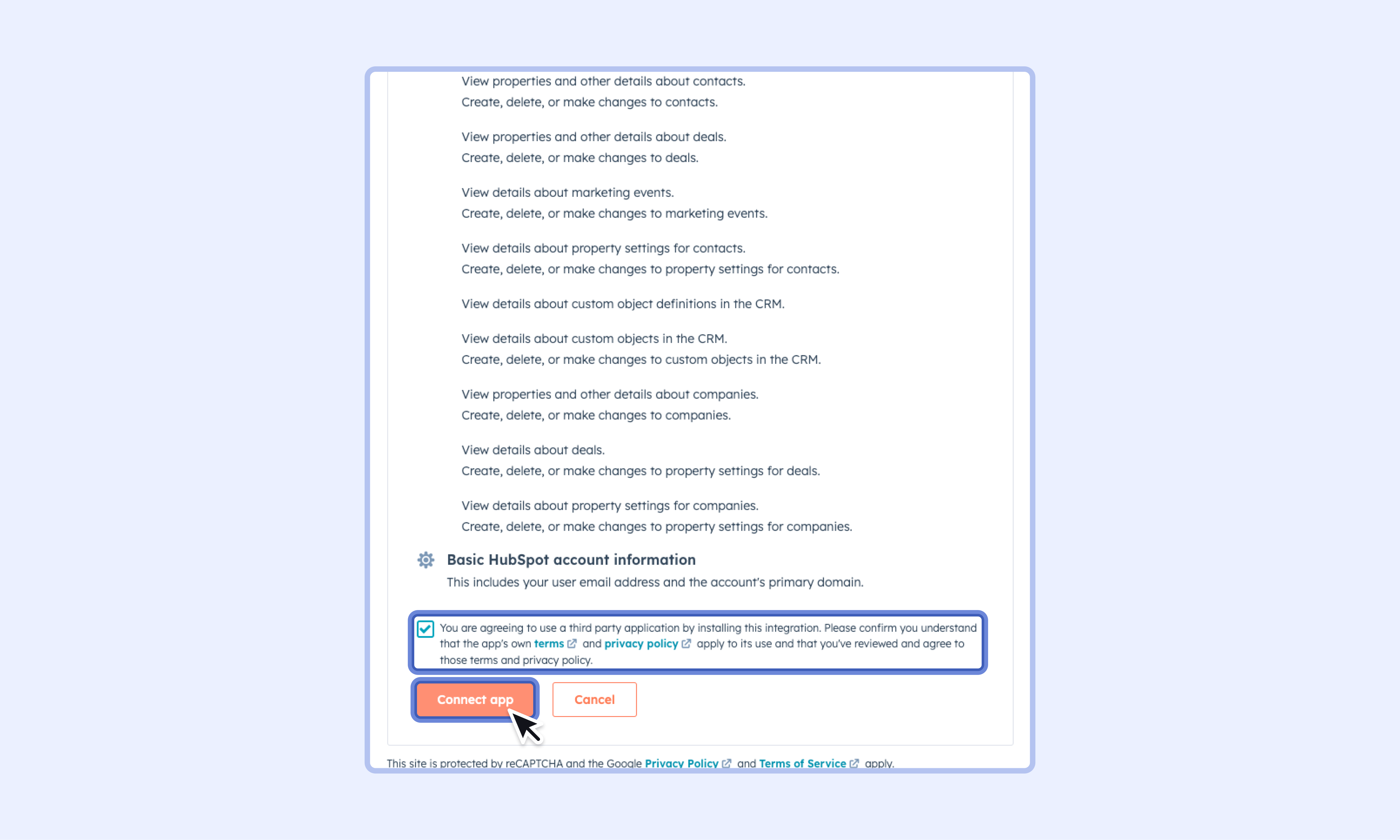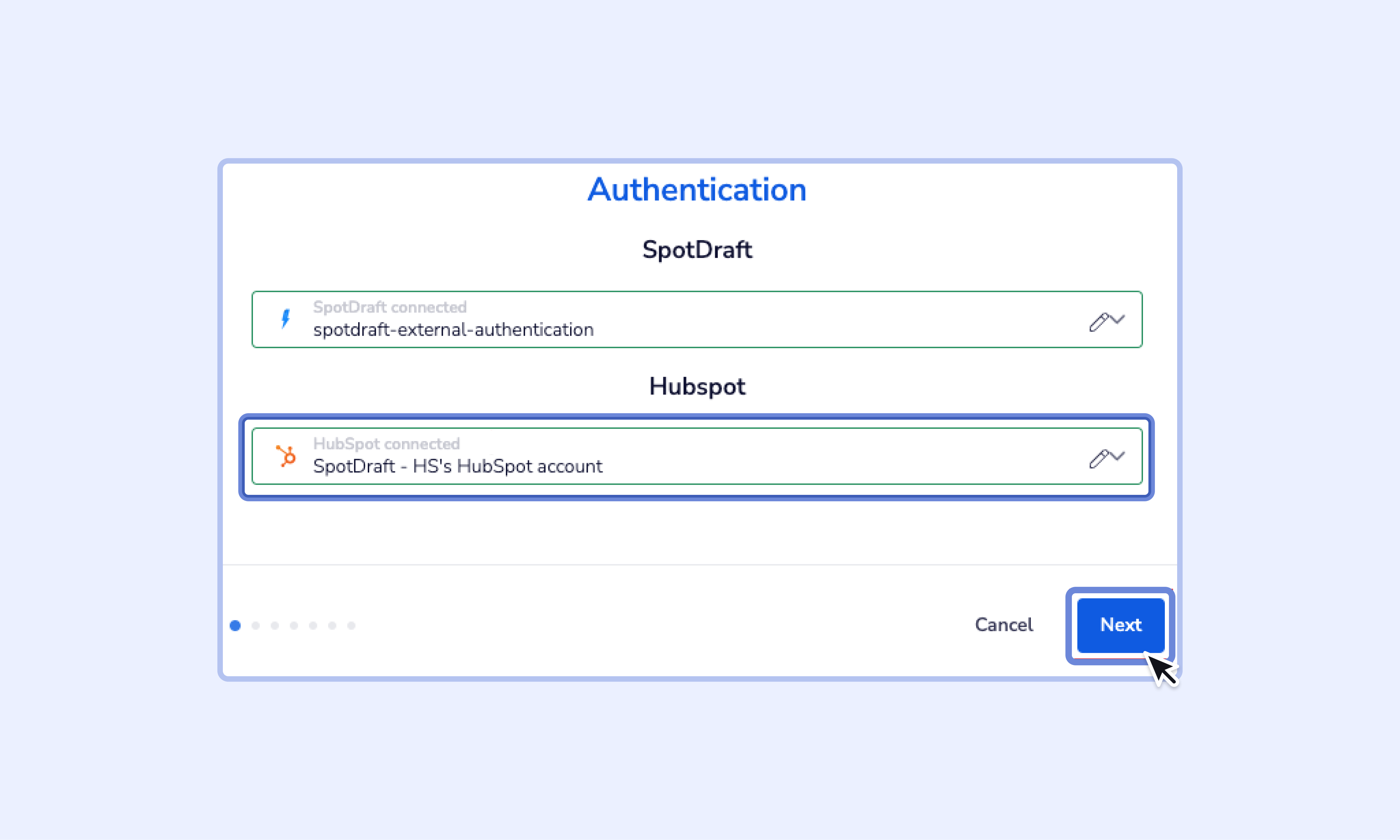 - Confirming your HubSpot account where SpotDraft will be installed.