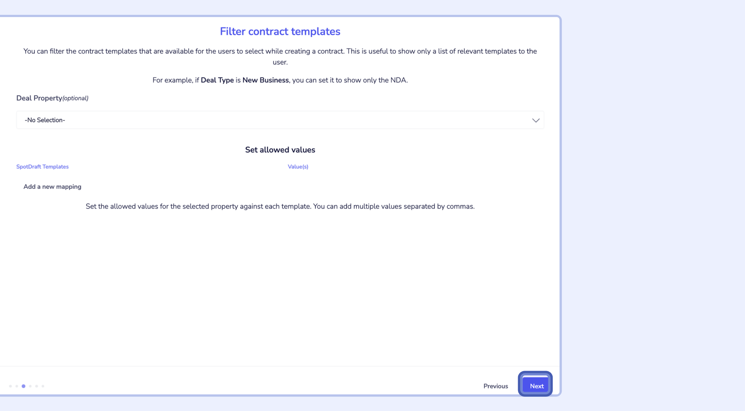 3.2 - If you require specific templates for certain deal types, then do the following before clicking on Next: