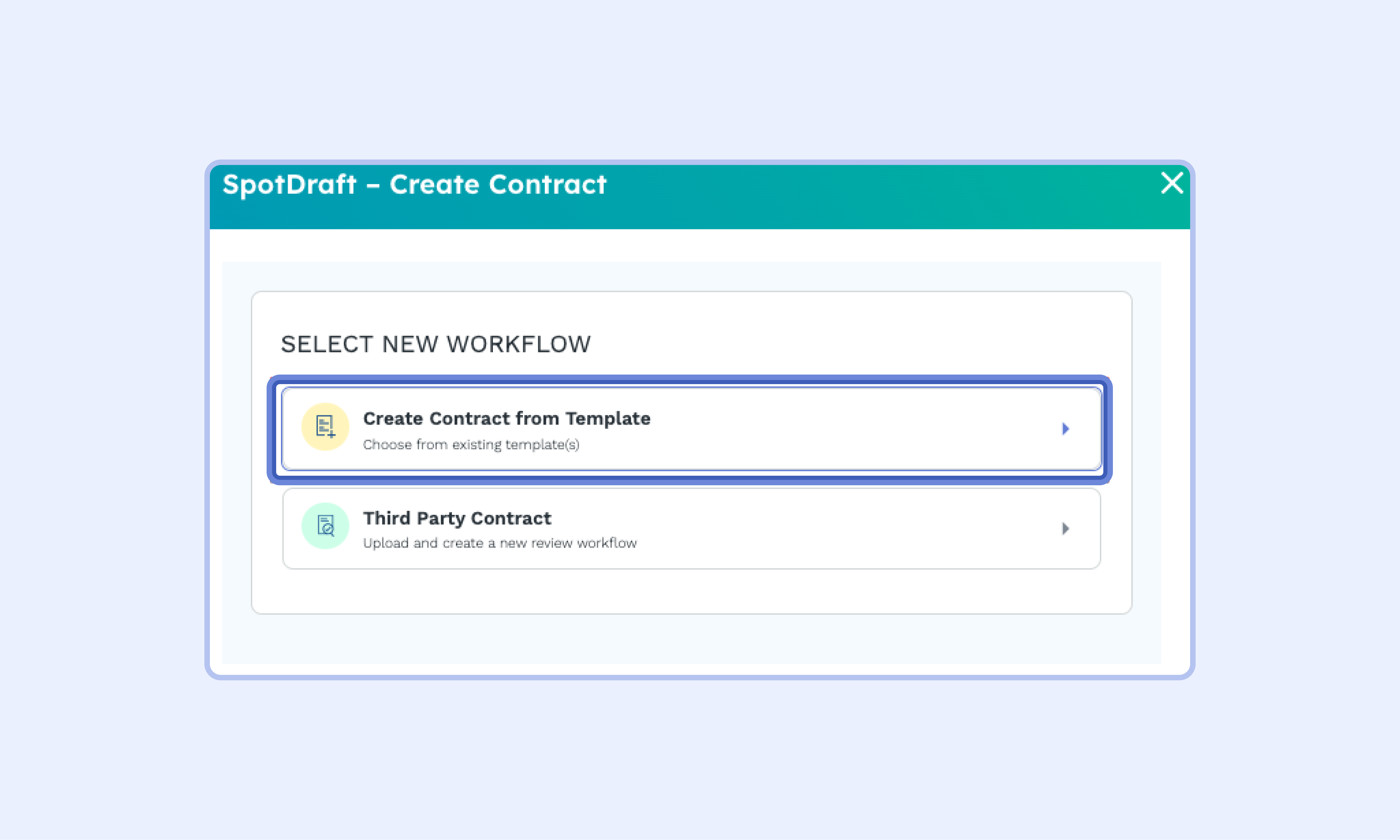 Note. For the ‘Create from Template’ workflow, you’ll need to already have the Template Contract created in SpotDraft and the mapping sheet completed for its questions and then complete the subsequent ‘Configuring the HubSpot integration for individual workflows’ section.